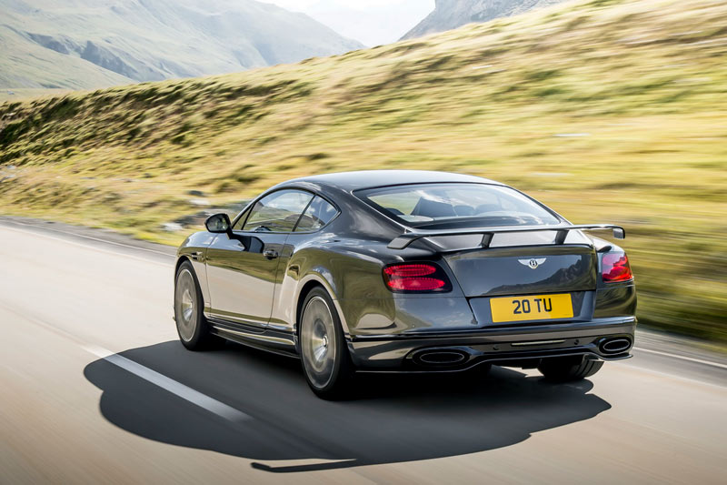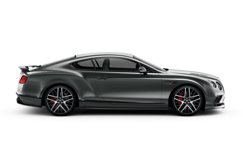 Como te comentaba al principio, su aspecto exterior nos ha dejado algo fríos tras la expectación creada, pero hay que reconocer que es bastante deportivo. Sus paragolpes son de nuevo diseño, con un splitter el frontal y un difusor realizado en fibra de carbono el trasero, mismo material utilizado para las rejillas de refrigeración instaladas en el capó. Asimismo, las llantas son de aleación forjada de 21 pulgadas, por lo que permiten rebajar 20 kg al conjunto, y el escape de titanio, que es opcional, 5 kg. Gracias a estas medidas, el Bentley Continental Supersports es la versión más ligera de su historia, a pesar de marcar en la báscula 2.280 kg.