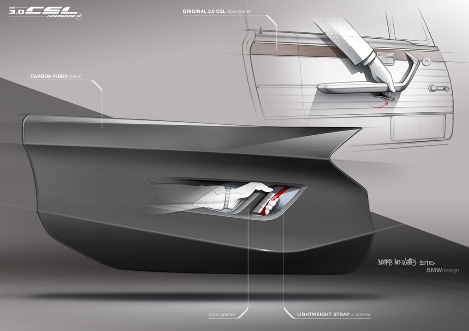 El diseño utilizado, tanto los colores como los gráficos son un guiño a la configuración original, conservando incluso el dorsal 25 de carreras original y reviviendo los adhesivos 'Bavarian Motor Works' en el parabrisas y la luneta trasera. Aunque tal vez lo más destacado de su diseño sean las llantas de aleación ligera de 21 pulgadas en dorado mate con incrustaciones en negro. El resto se mantiene fiel al 3.0 CSL Hommage original, conservando la aerodinámica elaborada con un prominente deflector, anchos pasos de rueda, un potente alerón trasero.