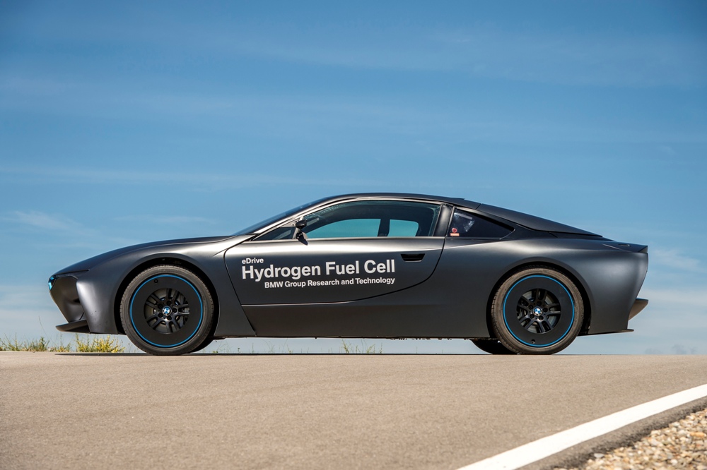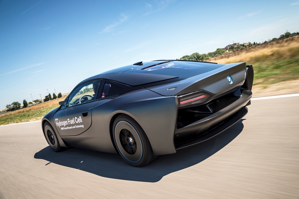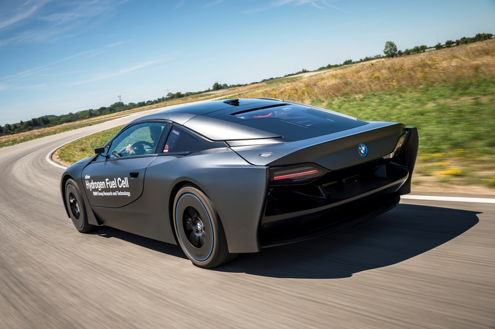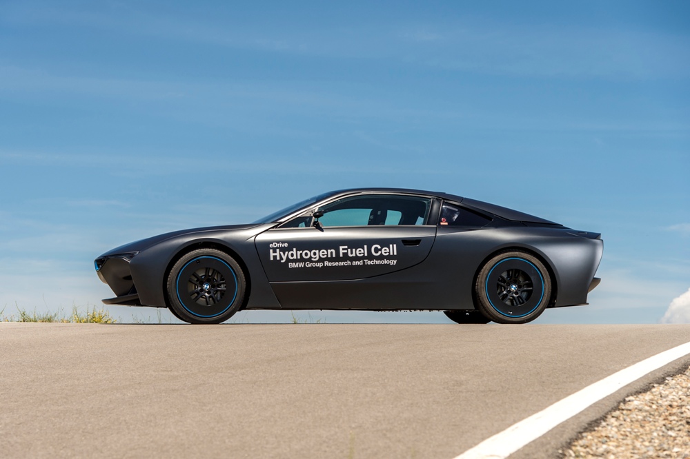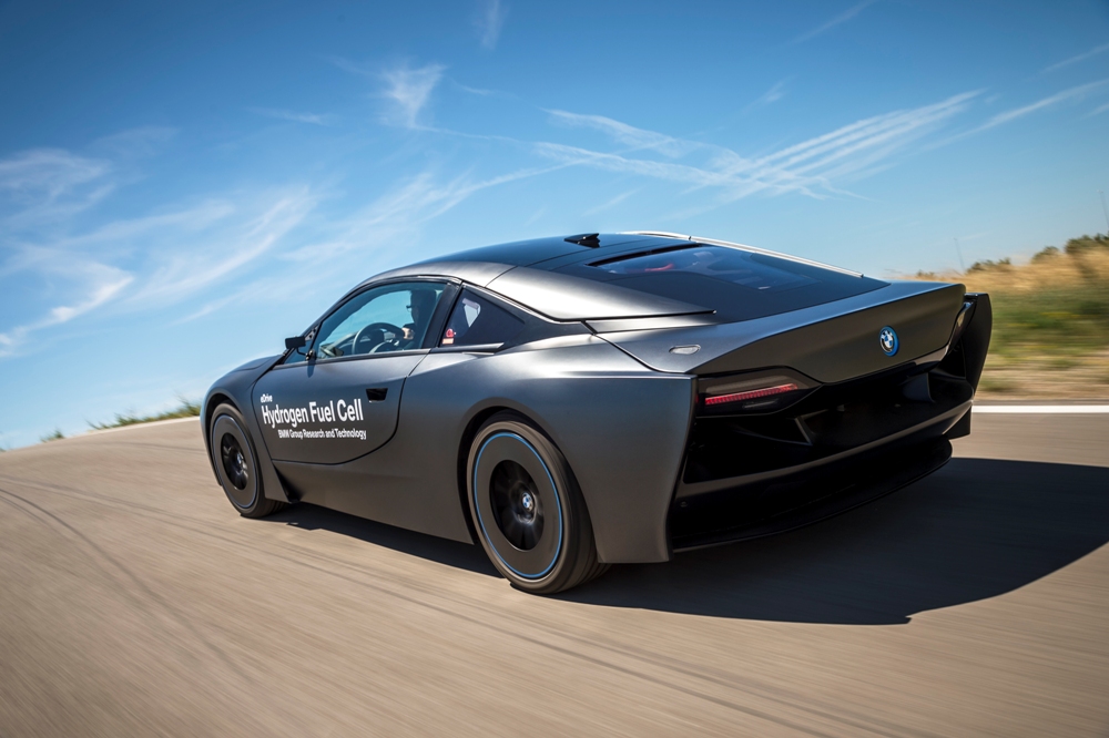 Para representar esta tecnología nace el BMW i8 Hydrogen Fuel Cell Concept, un prototipo basado en el BMW i8 (prueba) que conserva su carrocería de fibra de carbono y su diseño futurista, pero desarrollado a conciencia en el túnel de viento. Muestra de ello es su carrocería, con un frontal anguloso, unos pasos de rueda cuadrados, una cola alargada y plana para mejorar el flujo de aire y unas llantas extremadamente aerodinámicas. En la zaga, ésta ha sido desarrollada a medida, con una ventana posterior y un cuadro óptico personalizado.