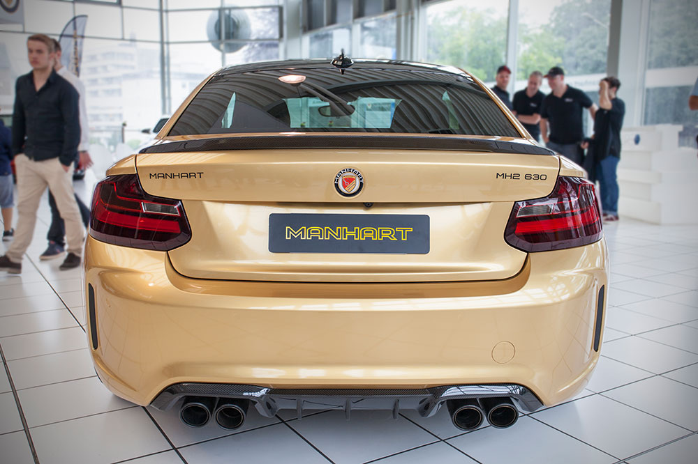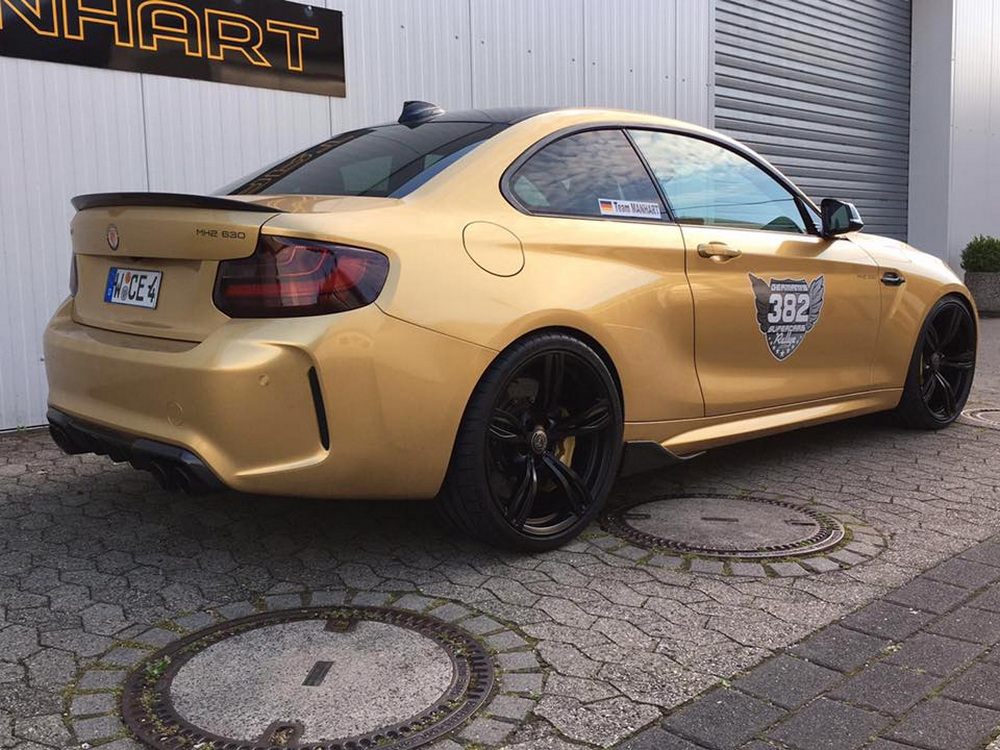 Su nombre completo oficial es Manhart MH2 630 y es la última creación del afamado preparador. Para la ocasión, han equipado al vehículo de acceso a la gama más deportiva de BMW con un completo kit aerodinámico que incluye nuevos y prominentes apéndices en el frontal, unas taloneras más agresivas, un capó con salidas de ventilación, un difusor de mayor tamaño, un pequeño alerón sobre el portón del maletero o unas llantas de aleación ligera de 19 pulgadas de diámetro. Estas últimas son un buen indicativo para saber qué es lo que esconde debajo de su capó.