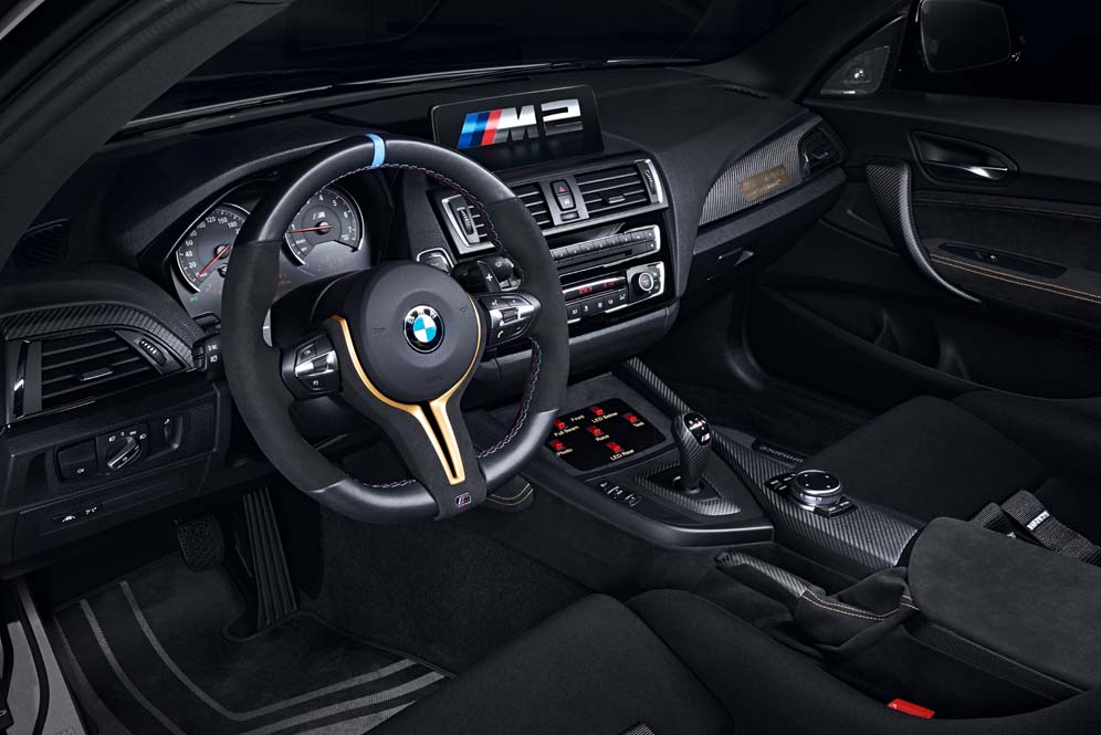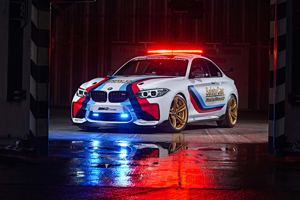 El BMW M2 MotoGP Safety Car ha sido modificado especialmente para cumplir su cometido. Adopta luces de seguridad de la FIA, splitter frontal, alerón posterior y jaula antivuelco. Para acoplarla, se han suprimido los asientos traseros. M Performance también ha impreso su estampa con multitud de complementos: carcasas de los retrovisores, estribos laterales y riñones y difusor trasero con escape. Además, se ha reforzado la carrocería. Asimismo, las llantas de aleación se han pintado en dorado, mismo color que algunos elementos del interior.