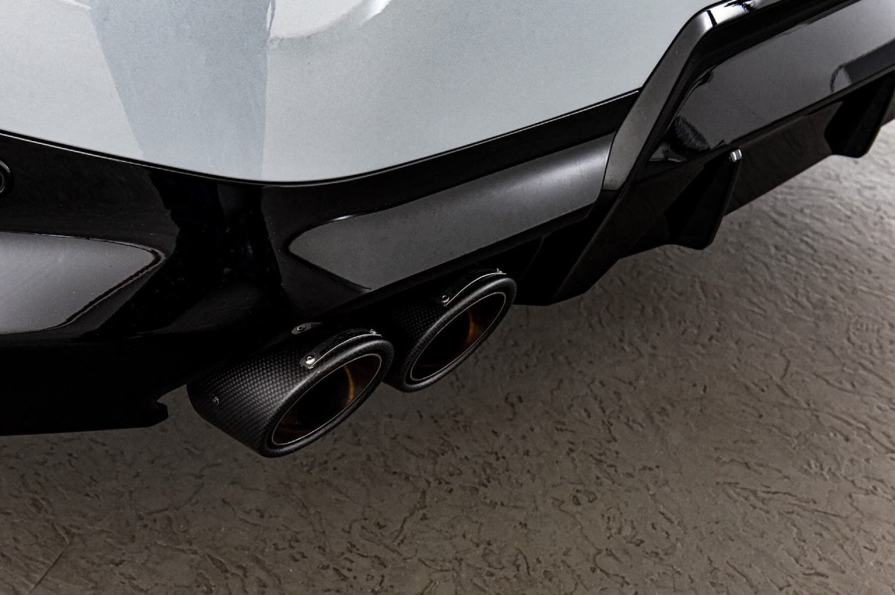 El kit aerodinámico incluye un alerón para el techo y dos pequeños para la parte superior del maletero, monta llantas de 19 y 20 pulgadas, el kit de espaciado separa las ruedas en 15 milímetros, la suspensión específica rebaja la altura del conjunto entre 20 y 25 milímetros y está disponible un sistema de escape de acero inoxidable con colas de fibra de carbono.