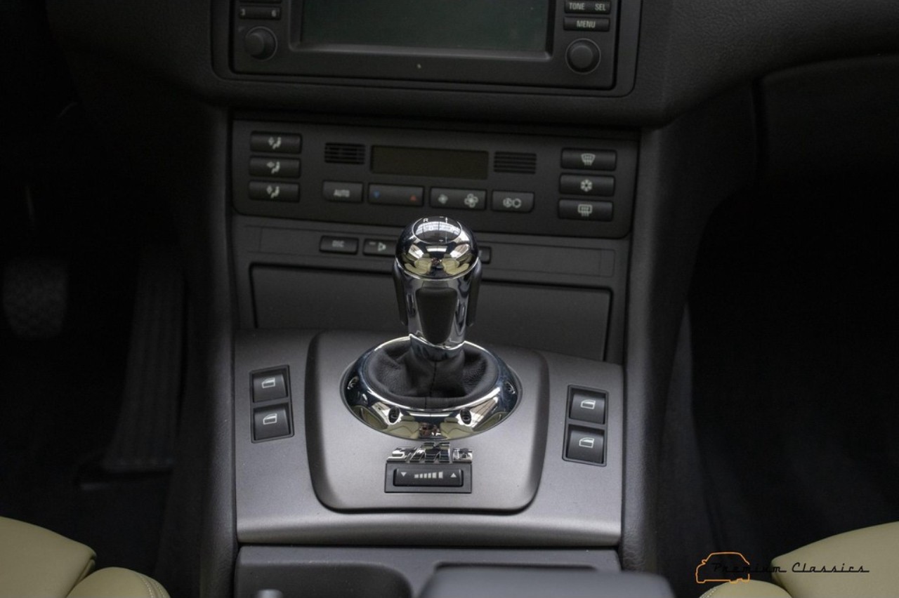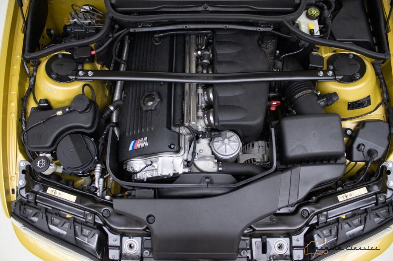 Bajo el capó se encuentra el conocido motor S54B32 de seis cilindros en línea y 3.2 litros de aspiración natural. Esta mecánica desarrolla 343 CV de potencia y 365 Nm de par máximo. De serie, el motor estaba ligado a un cambio manual de seis velocidades, que es la configuración más deseada por los fanáticos, pero este ejemplar en particular equipa el controvertido cambio automático SMG de BMW.