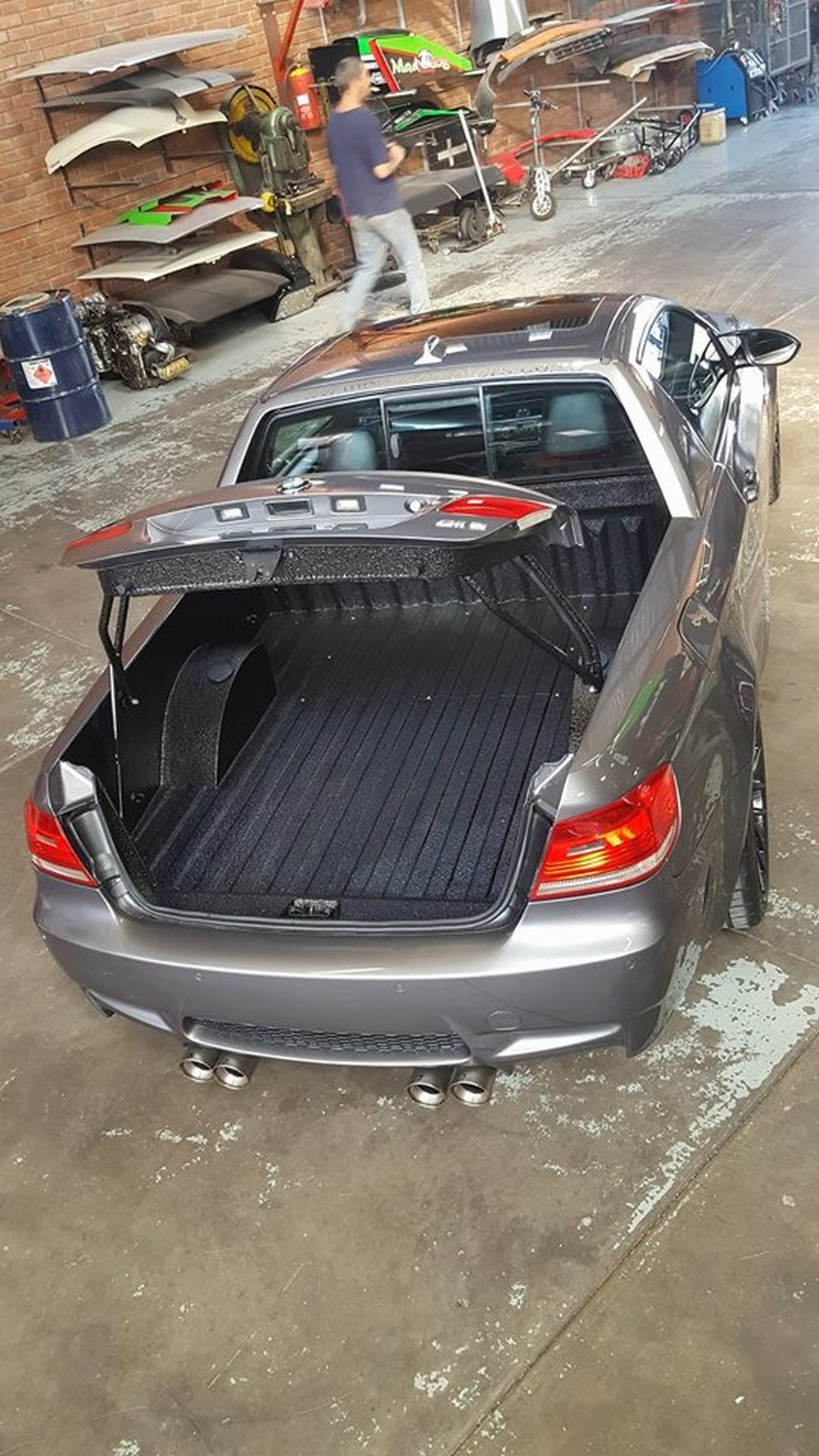 De esta forma, los chicos de Mad Dog Racing han instalado un compresor volumétrico que permite incrementar el rendimiento del propulsor por encima de los 500 CV -no dan una cifra de potencia concreta-. Pero lo más interesante de este M3 pick-up es la transformación a la que ha sido sometido su exterior, pues han recortado la carrocería de un M3 hasta dejarla en el estado que puedes ver en las imágenes. Eso sí, no han señalado si partieron de la base de la variante coupé o descapotable (M3 E93) de este vehículo.