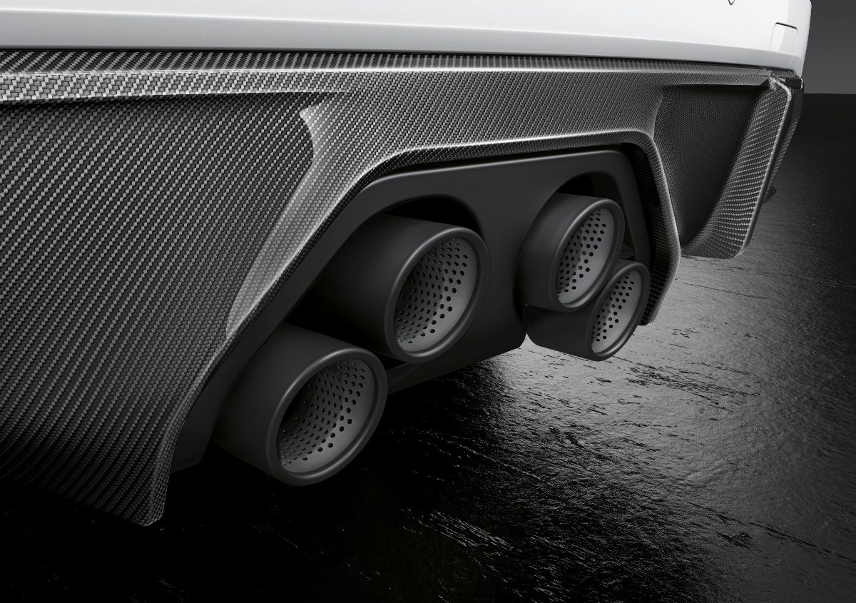 Desde el lateral encontramos pasos de rueda acampanados que responden al incremento de anchura de 75 mm con respecto al BMW Serie 3 (prueba), una salida de ventilación en la aleta delantera y una zaga con faros LED específicos, un parachoques deportivo y un gran difusor trasero con dos salidas dobles de escape. El techo está fabricado en plástico reforzado con fibra de carbono (tan solo disponible en la versión Competition) y luce un pequeño spoiler trasero sobre la tapa del maletero.