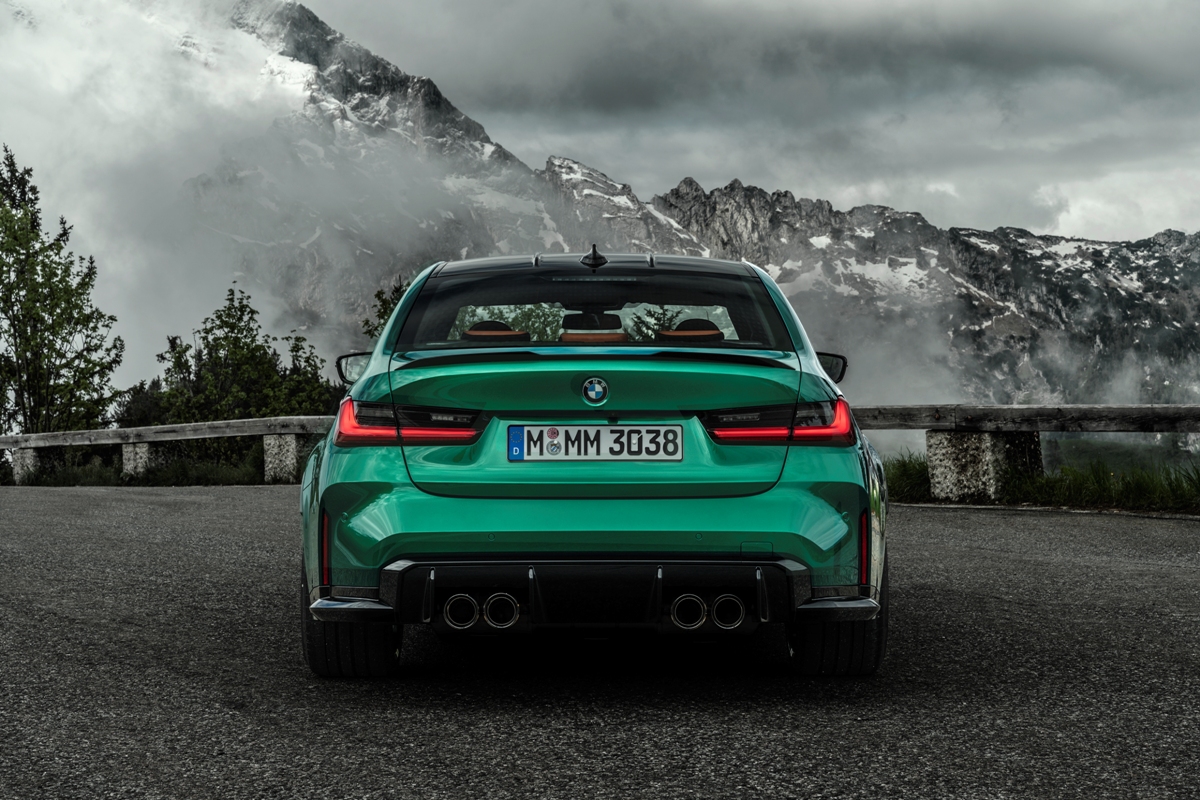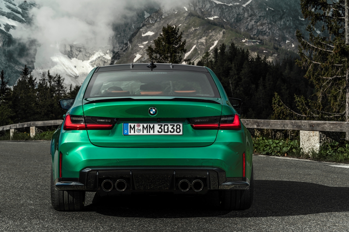 Los clientes también podrán añadir una dosis extra de fibra de carbono en el exterior. Ya sea un splitter delantero, apéndices aerodinámicos, taloneras, un alerón posterior, un difusor nuevo con cuatro salidas de escape centrales o carcasas de los espejos retrovisores, el M3 2021 mejora visualmente su atractivo. También se han desarrollado unas llantas forjadas M de 21 pulgadas en tratamiento dorado o negro brillante. Unas llantas de 19 pulgadas con neumáticos de invierno proporcionan la mejor tracción cuando el clima no acompañe.