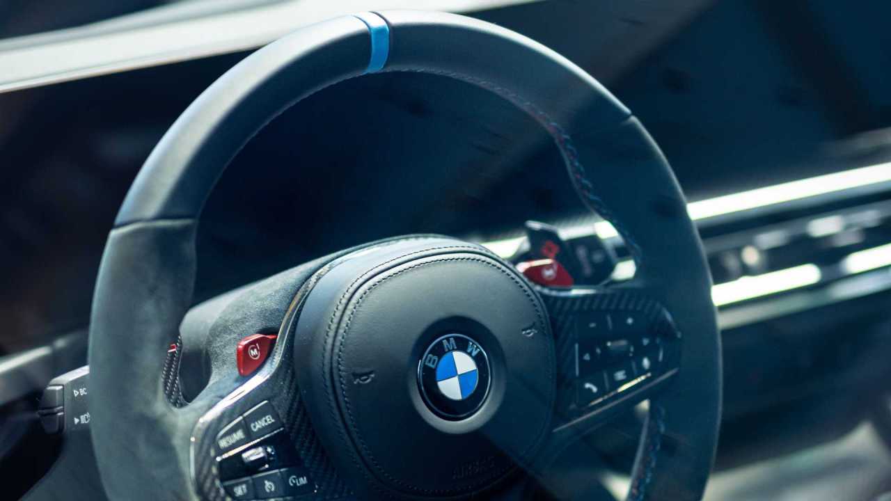 Por último, el splitter delantero y las carcasas de los espejos retrovisores son de carbono. También cuenta con los logotipos clásicos de BMW por el 50º aniversario de M y una cinta especial para remolque en el parachoques delantero.