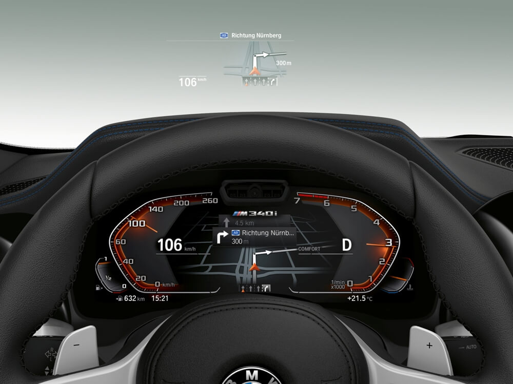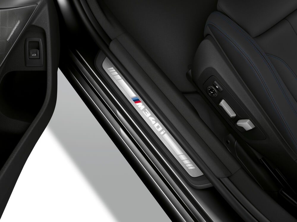En el interior del M340i xDrive 2019 encontramos asientos deportivos con tapicería específica de Alcantara, techo terminado en antracita, volante M revestido de cuero con levas para el cambio, un cuadro de instrumentos digital con la inscripción ‘M340i’, umbrales de las puertas delanteras con la misma denominación, pedales de aluminio e inserciones de fibra de carbono en el salpicadero y la consola central.