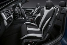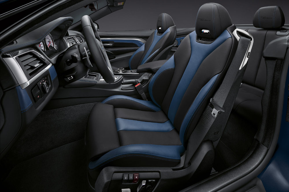 Otra característica destacada del M4 Cabrio Edition 30 Jahre es el color de su carrocería, que está disponible en dos tonos: Macao Blue metalizado o Mandarin II (inspirado en el Dark Yellow del M3 E36 Cabrio). Estos colores contrastan con los elementos decorativos en negro brillante, presentes en la parrilla, en las salidas de aire laterales o en la denominación del vehículo. Y en el interior, nos encontramos con un tapizado de cuero Merino con posibilidad de ir a juego con el color exterior, además de con las correspondientes placas identificativas de toda serie especial.