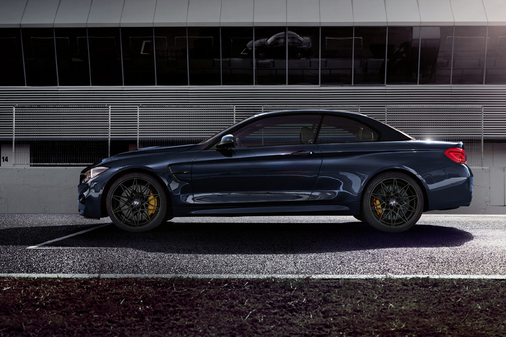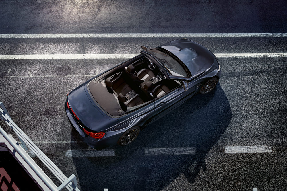 Porque este BMW M4 Cabrio de edición limitada monta de serie el Paquete de Competición M, que añade más potencia (hasta 450 CV), una suspensión adaptativa M con una puesta a punto específica, el sistema de escape deportivo o unas llantas de aleación de 20 pulgadas de diámetro con un diseño similar a las del brutal BMW M4 GTS. Estas últimas van pintadas en gris metalizado para la ocasión.