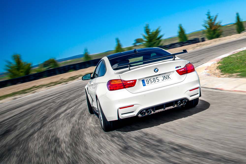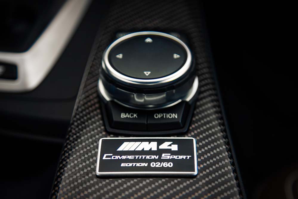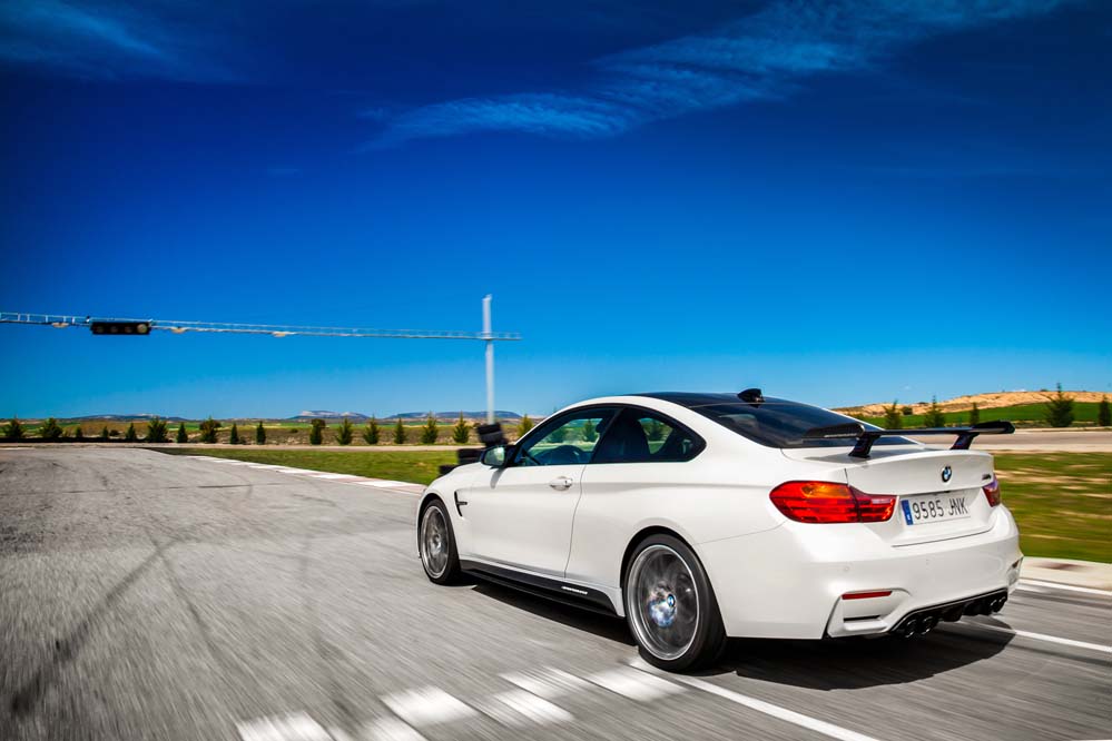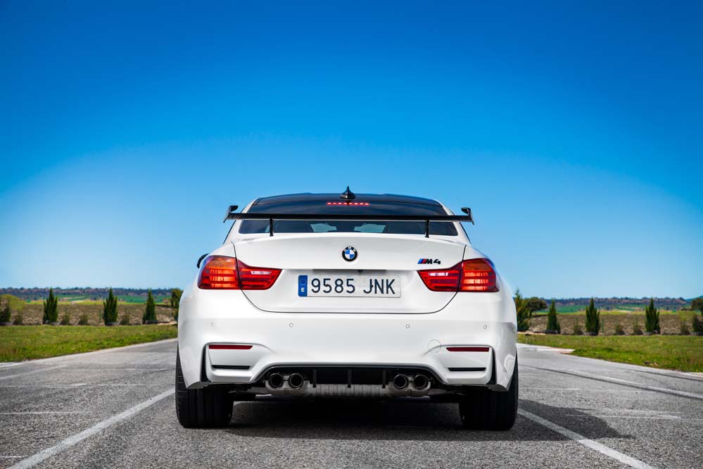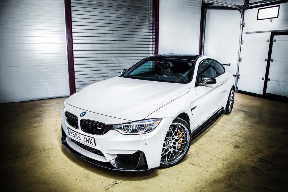 Podrás diferenciarlo por las exclusivas llantas de 20 pulgadas estilo 666, aunque, a diferencia del GTS, sin ribete en naranja; por los frenos carbono-cerámicos, 13,5 kilos más ligeros que los de serie; el alerón trasero, los asientos deportivos de nuevo diseño con hendiduras en los respaldos para favorecer la refrigeración de la espalda, los cinturones de seguridad delanteros con la banda tricolor M y los elementos exteriores en PRFC (fibra de carbono), como son el difusor, que alberga cuatro salidas de escape en negro brillante -mismo color que los riñones-; las carcasas de los retrovisores y el ‘splitter’ delantero. Además, como edición limitada que es, adopta una placa con el número de unidad.
