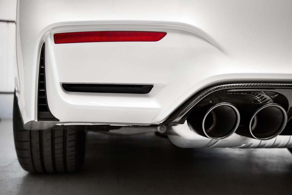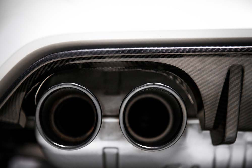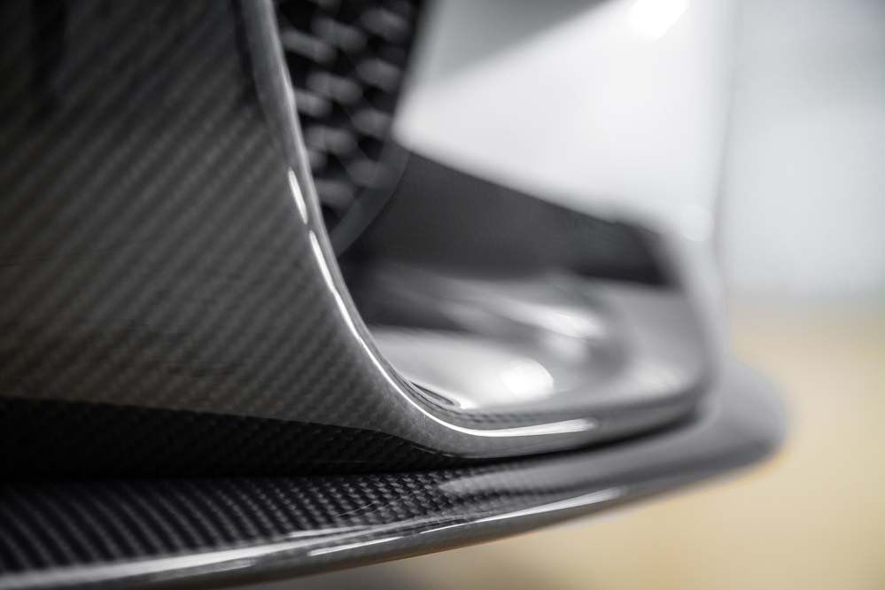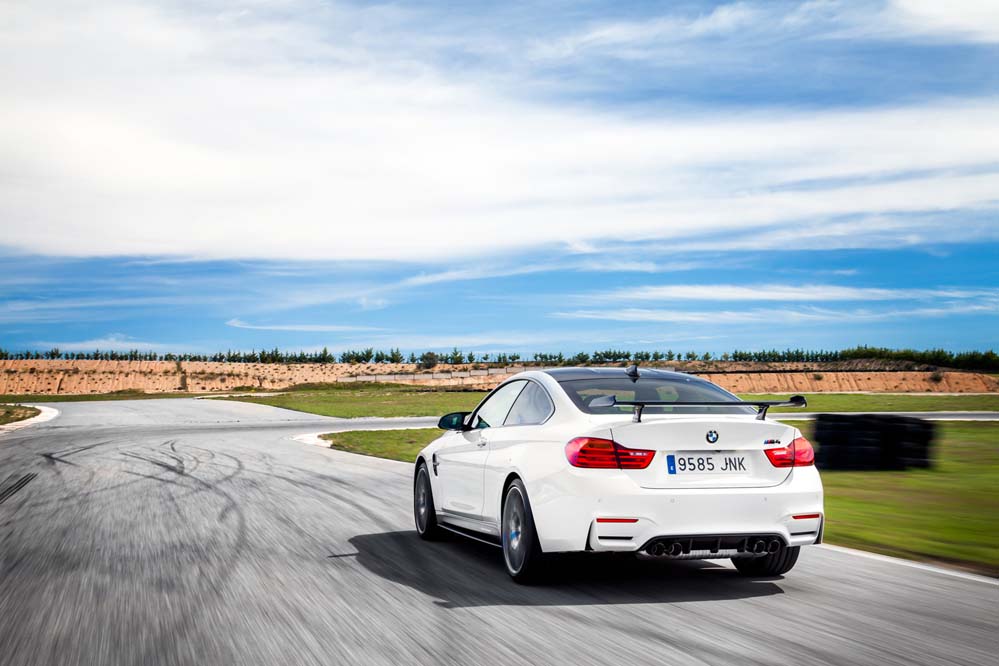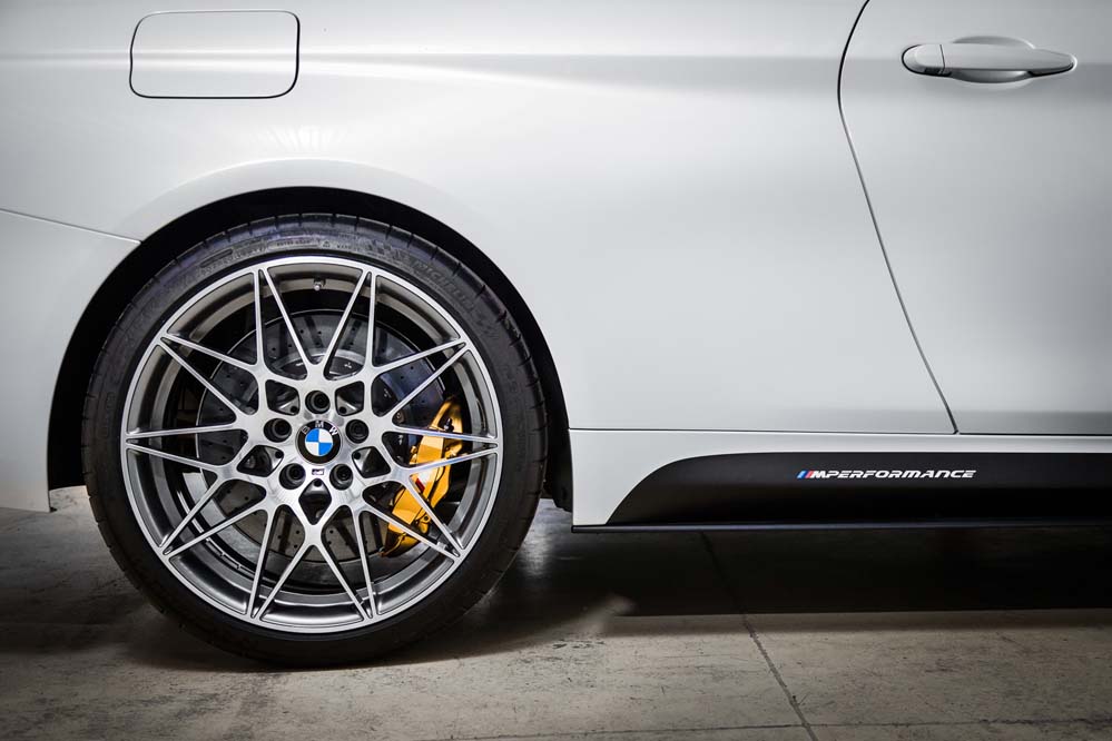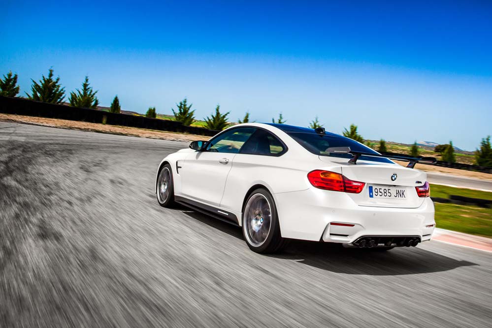Podrás diferenciarlo por las exclusivas llantas de 20 pulgadas estilo 666, aunque, a diferencia del GTS, sin ribete en naranja; por los frenos carbono-cerámicos, 13,5 kilos más ligeros que los de serie; el alerón trasero, los asientos deportivos de nuevo diseño con hendiduras en los respaldos para favorecer la refrigeración de la espalda, los cinturones de seguridad delanteros con la banda tricolor M y los elementos exteriores en PRFC (fibra de carbono), como son el difusor, que alberga cuatro salidas de escape en negro brillante -mismo color que los riñones-; las carcasas de los retrovisores y el ‘splitter’ delantero. Además, como edición limitada que es, adopta una placa con el número de unidad.