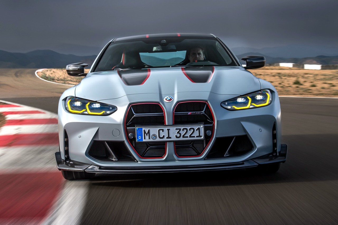 Desde el primer momento busca marcar distancias con el M4 convencional, algo que queda patente en una estética todavía más arriesgada e inspirada en el mundo de la competición. Luce los logos del 50 aniversario de BMW, la trama de la enorme parrilla es realmente peculiar, los detalles en color rojo de sus marcos luego repiten en la decoración del capó y del techo, la firma lumínica de los faros es amarilla, los paragolpes son específicos y abunda la fibra de carbono a la vista.