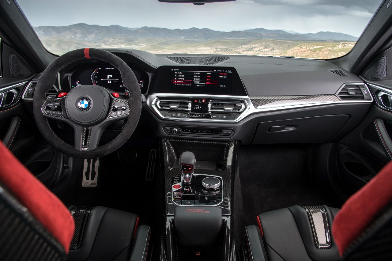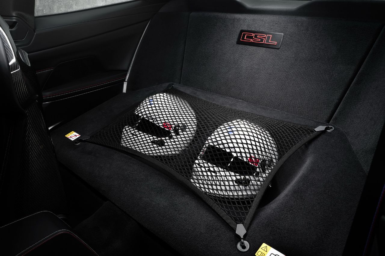 Varias piezas de la carrocería están hechas de plástico reforzado con fibra de carbono (CFRP), primer paso de una dieta que continúa el sistema de escape de titanio, las llantas de aleación, el sistema de frenos carbocerámicos o un interior que prescinde de las plazas traseras, instala asientos deportivos y elimina gran parte del material de insonorización. En total supone una rebaja de 100 kilos que consigue que el peso del M4 CSL sea de solo 1.625 kilos.