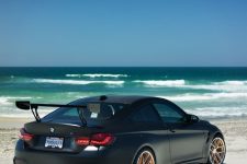 La pintura Sapphire Black Metallic de fábrica fue un estándar en todos los BMW M4 GTS, sin embargo, esta unidad ha recibido una capa de protección específica que hace que la pintura parezca negro mate. Se le ha instalado un alerón trasero enorme que asciende mucho más que el original, así como un nuevo difusor trasero con algunos detalles en naranja para completar el paquete y combinar con el splitter delantero.