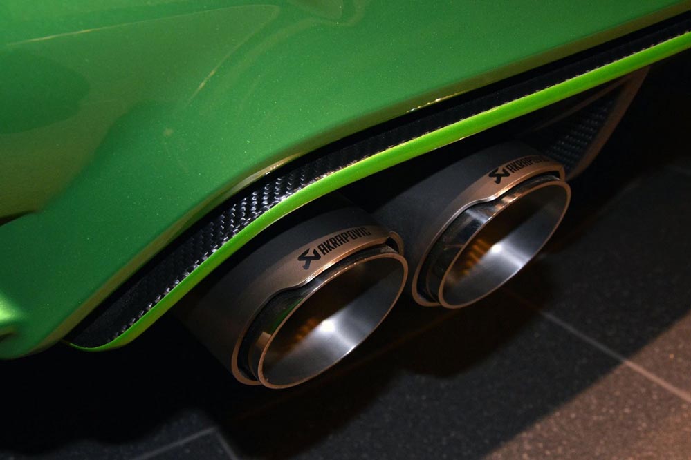 Pero no solo de pintura ‘vive’ este BMW M4 Java Green. Además del escape Akrapovic Evolution con cuatro colas de titanio, su motor biturbo de 2979 cm³ de cilindrada ha sido potenciado hasta los 540 CV, lo que supone 109 CV más. También el par motor ha aumentado, pasando de 550 Nm a 685 Nm, todo ello gracias al trabajo de Manhart Racing en la centralita y al escape de la compañía eslovena.