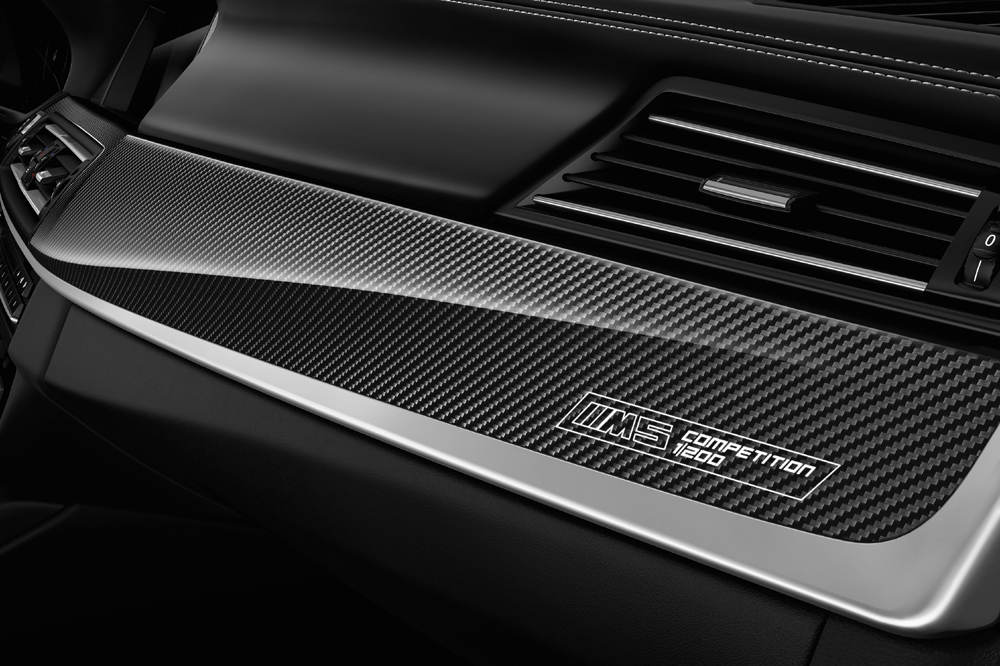Por supuesto, cuenta con logos identificativos en su carrocería, que en este caso están situados en las parrillas laterales, sobre las que se puede leer el anagrama M5 Competition. En el habitáculo, presenta unas molduras de carbono con el logotipo “M5 Competition 1/200”, indicando que se trata de una edición limitada. El cuero Merino de color negro cubre casi todas las superficies y cuenta con costuras en contraste, mientras que algunos de los elementos que equipa de serie son el sistema de sonido Bang & Olufsen, el Head-Up Display, el avisador de cambio involuntario de carril, el sistema de cámaras Surround View o el paquete completo de BMW ConnectedDrive.