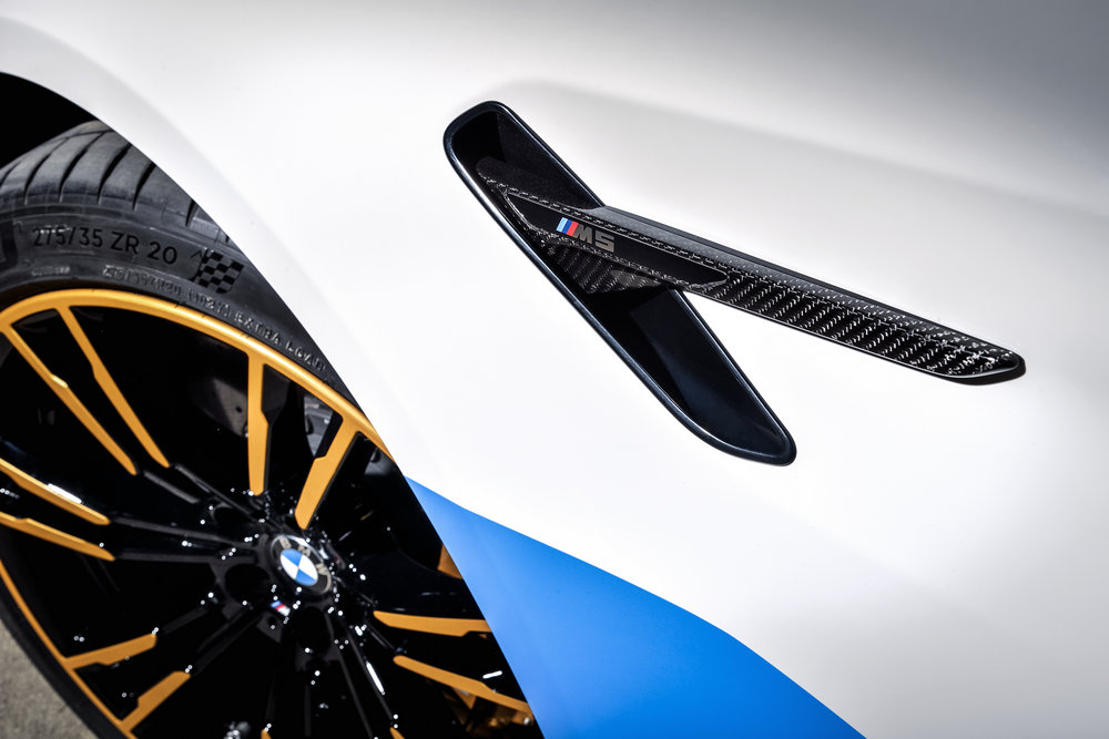 Para que sea más fácil ver las diferencias entre el M5 MotoGP Safety Car y el modelo en el que está basado, BMW ha compartido una serie de imágenes en las que podemos ver a los dos vehículos aparcados uno junto al otro. A parte de la decoración, destaca porque cuenta con una amplia variedad de accesorios BMW M Performance, tales como la parrilla delantera, el faldón frontal, las taloneras, las salidas de aire laterales, el difusor trasero o el alerón posterior.