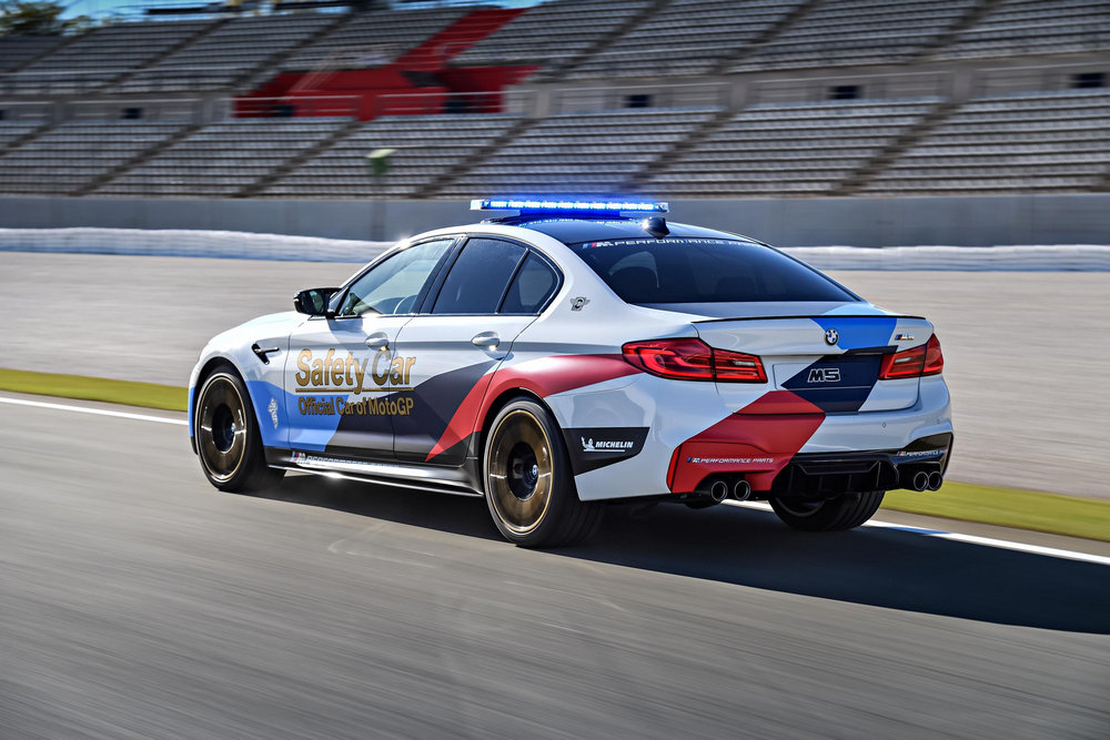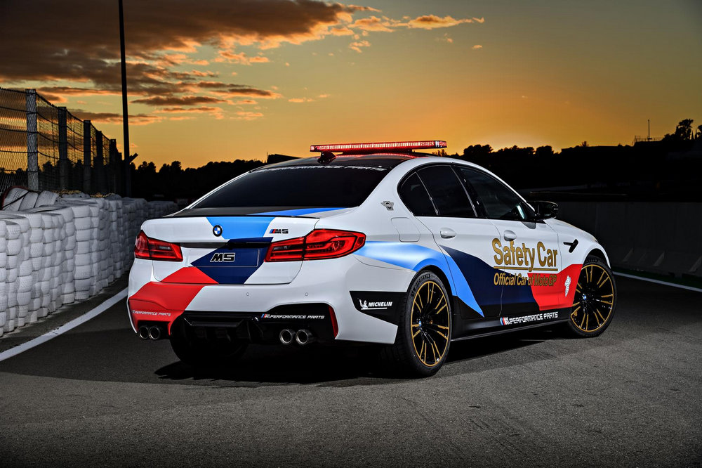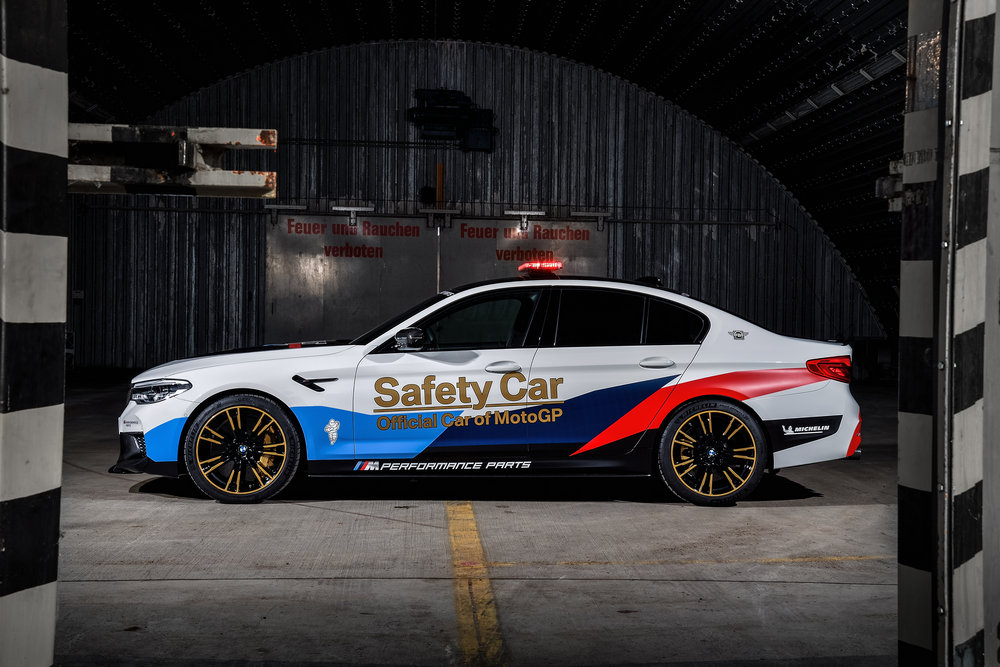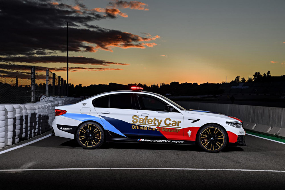 El nuevo coche de seguridad de MotoGP es un BMW M5 de última generación que cuenta con una llamativa decoración exterior, equipamiento específico para desempeñar las funciones de safety car y una selección de accesorios M Performance. Un modelo que tiene el honor de ser el ejemplar con el que BMW M y Dorna Sports, el organizador de MotoGP, alcanzan la 20ª temporada de una colaboración que comenzó allá por 1999.