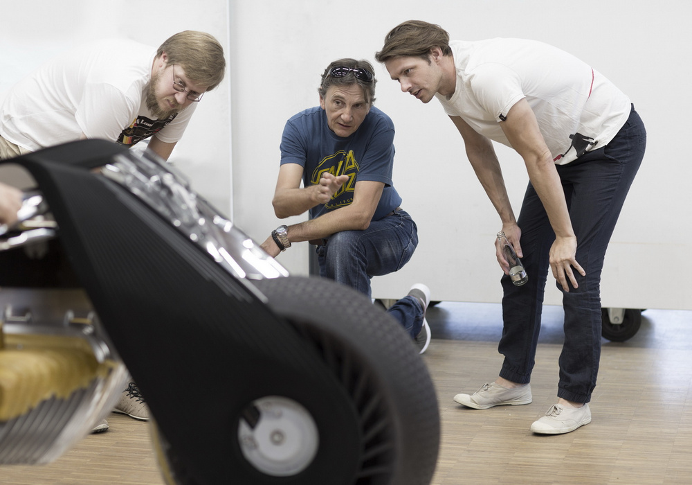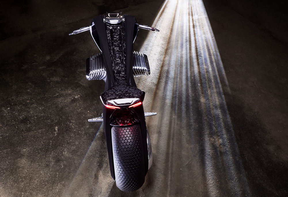 Si se mueve el manillar, todo el bastidor se deforma para que podamos cambiar de dirección, alterando su resistencia a esta operación en función de la velocidad a la que circule el vehículo. La apariencia de su motor está inspirado en los históricos bóxer de BMW, pero en realidad aloja “una unidad de accionamiento sin emisiones”, según indica la marca, que probablemente quiere decir que equipa un motor eléctrico y como el chasis y otros elementos (como el perfil de los neumáticos), cambia de características en función de la velocidad.
