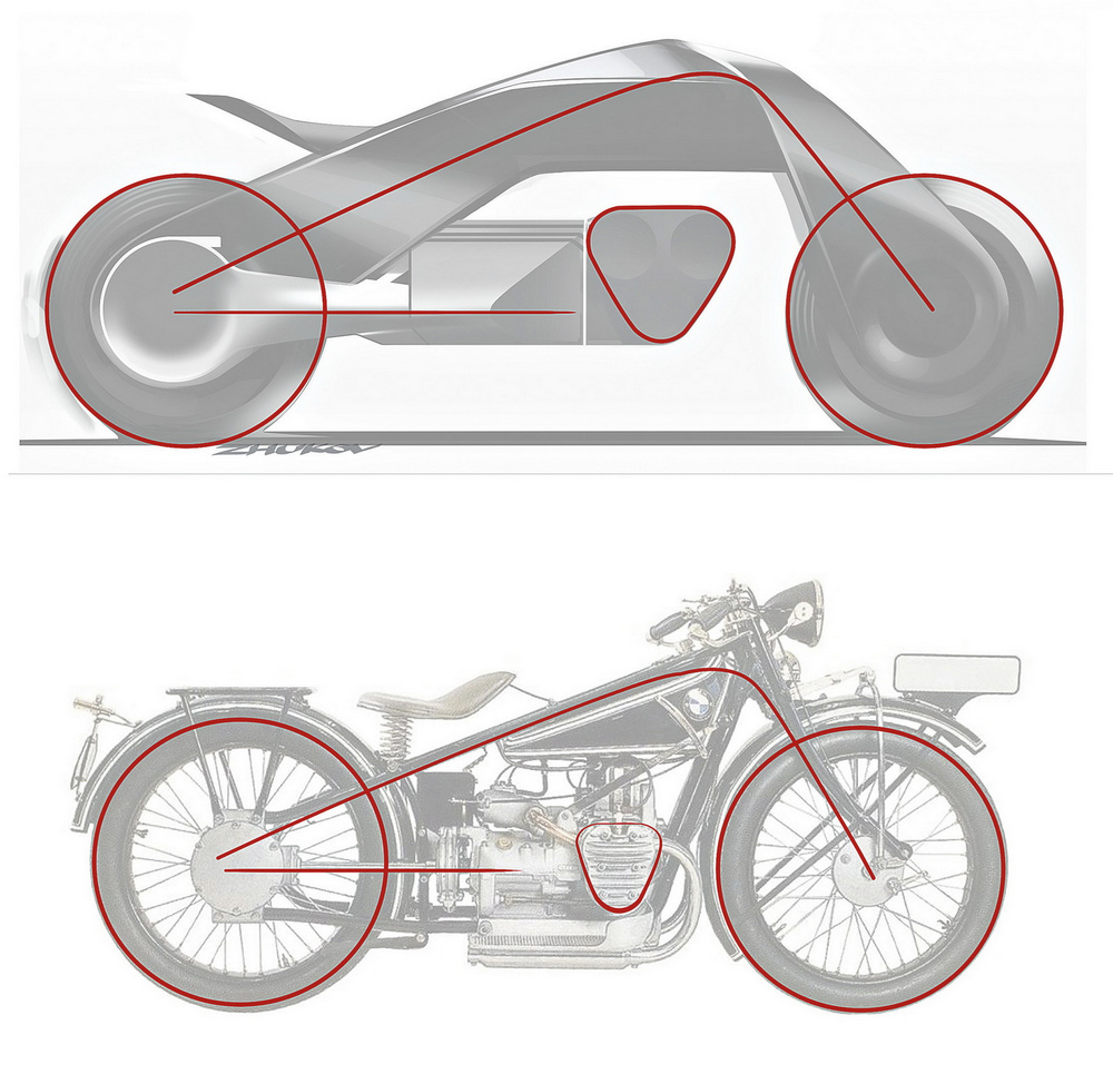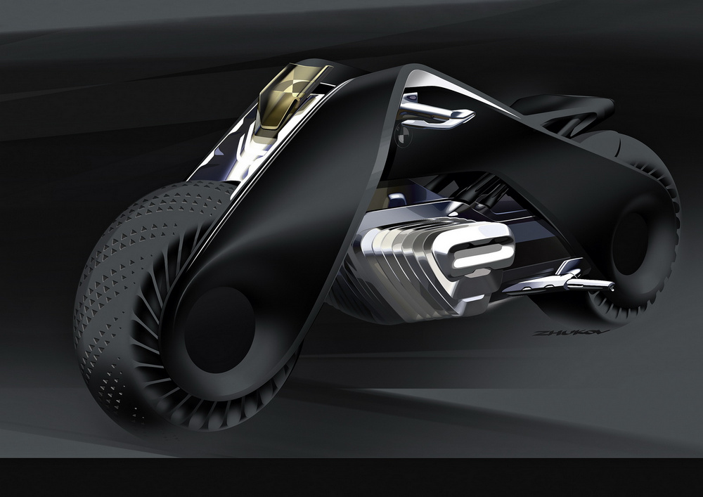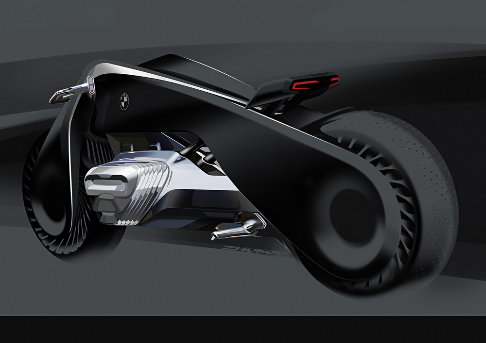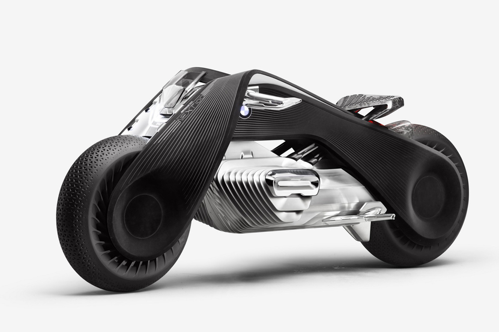 Las líneas de la moto conceptual de BMW Motorrad están inspiradas en la de la primera motocicleta de la historia de BMW, la R32 del año 1923, y como buen prototipo, recurre a soluciones de lo más llamativas, como la ausencia de cojinetes y articulaciones visibles desde el exterior. El esqueleto de esta moto, denominado Flexframe, se extiende desde la rueda delantera hasta la trasera como si fuera una única pieza y su flexibilidad permite que podamos girar sin necesitar las habituales articulaciones.