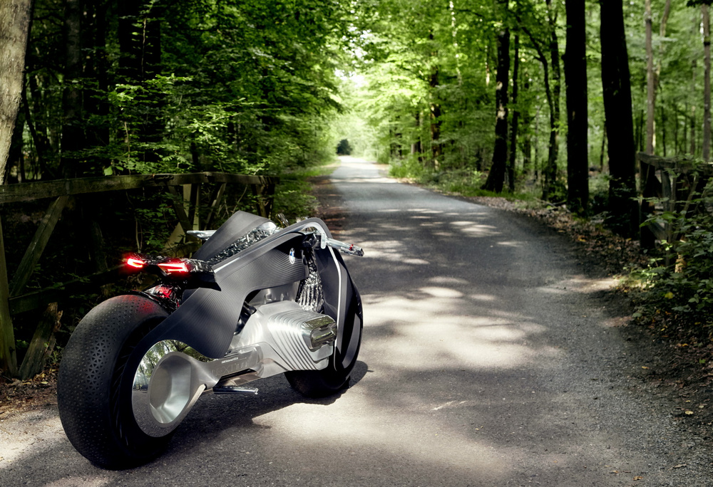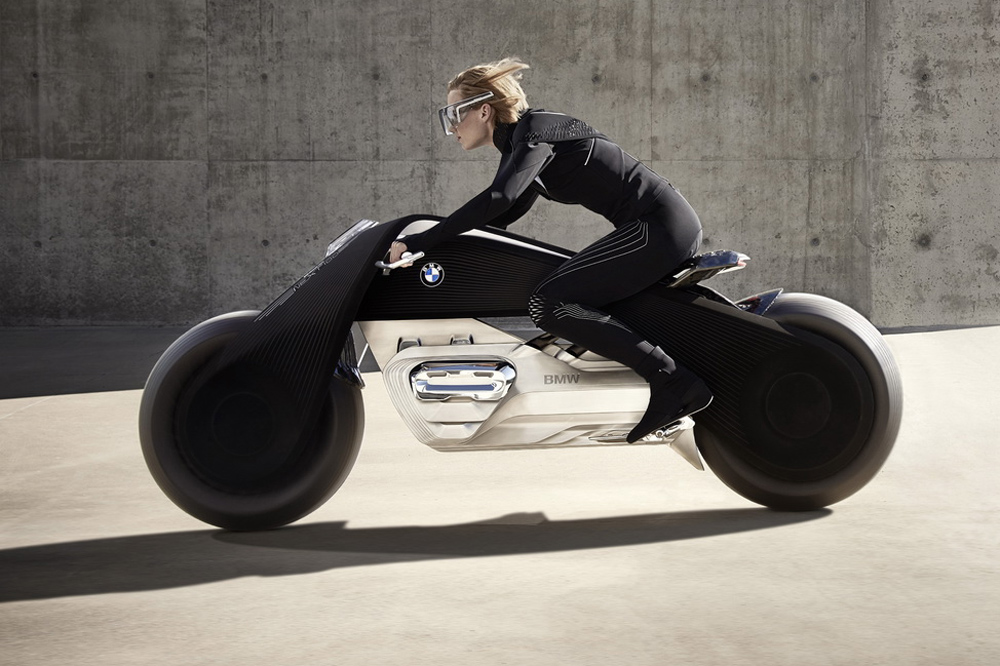 “BMW Motorrad Vision NEXT 100 personifica la idea de BMW Group de cómo deberán ser las motocicletas en un mundo interconectado: una experiencia analógica en una era digital. Me permite escaparme de la rutina. Experimento una sensación de libertad absoluta desde el momento en el que me subo en ella. - "The Great Escape", así describe Edgar Heinrich, director de diseño de BMW Motorrad la idea fundamental del vehículo conceptual creado por la marca.