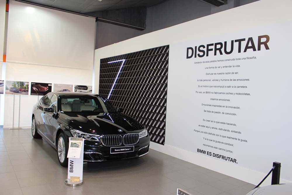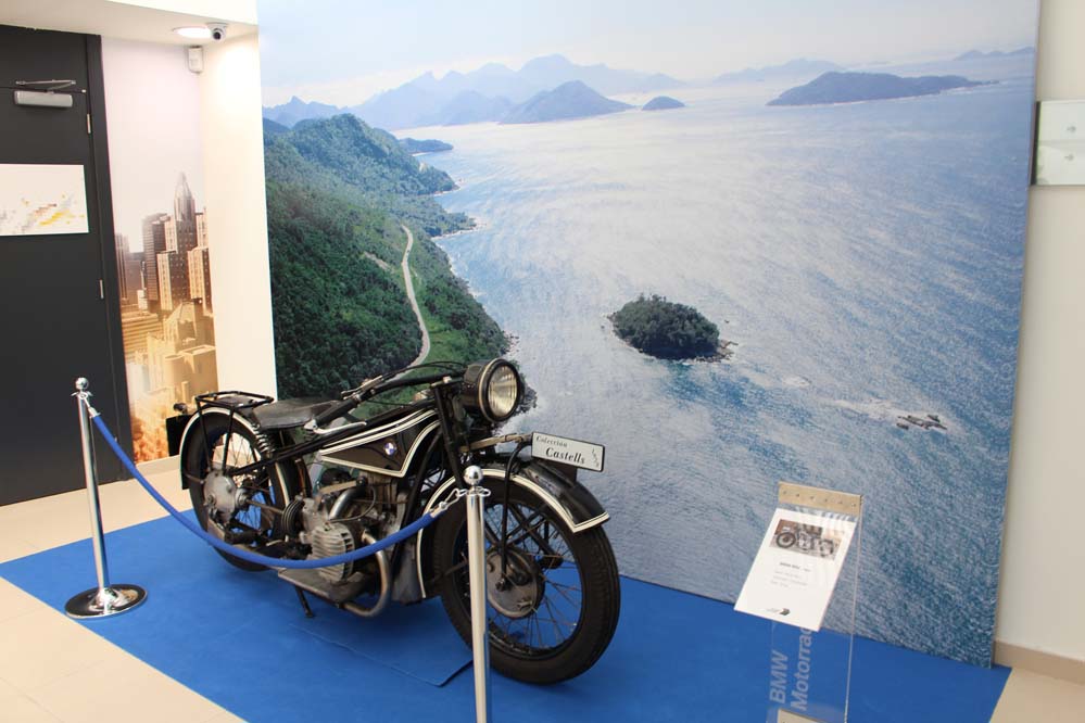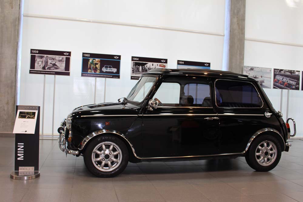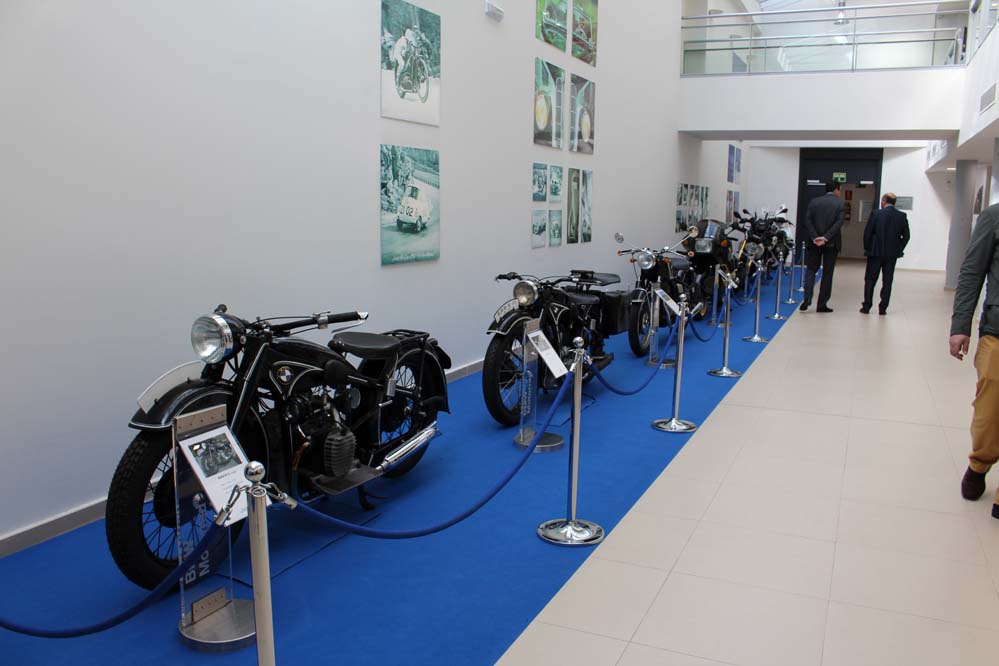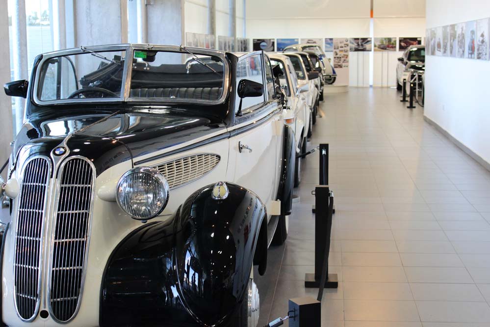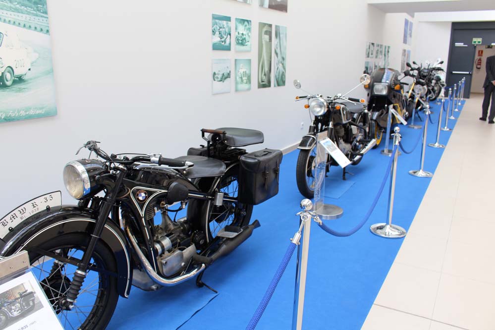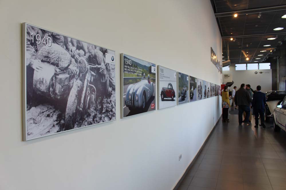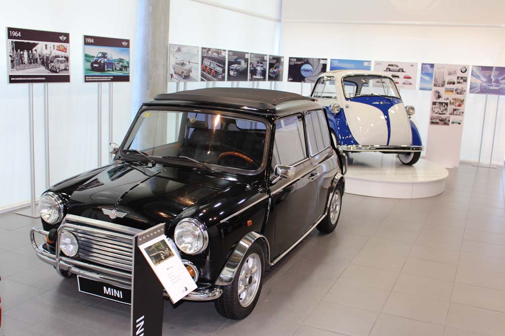 La visita, acompañada en todo momento por el departamento de Comunicación, formado por Pilar García de la Puebla, Borja Hormigos y Javier Onrubia, ha estado dirigida por Alvaro San Martín, comisario de la exposición y persona encargada de realizar este viaje al pasado. Este especialista en producto e historia de la casa ha comenzado el repaso con una serie de maquetas, donde ha puesto especial hincapié en la del 3/15 PS Dixi, el primer coche del fabricante bávaro y que gracias a él, la compañía pudo pasar los duros años de la Depresión; en la del BMW 328 Mille Miglia, vehículo que dio un salto adelante de unos quince años por su chasis tubular, carrocería de aleación con aluminio y magnesio, motor de seis cilindros y aerodinámica avanzada; y en la del Isseta, el microcoche fabricado por la pequeña compañía italiana Rivolta.