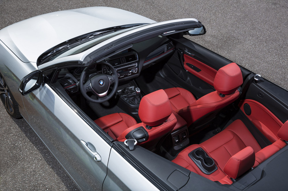 El BMW Serie 2 Cabrio 2015 dispone de una capota textil, de accionamiento automático, que es capaz de abrirse y cerrarse en 20 segundos. Además, puede completar esta operación en movimiento hasta una velocidad máxima de 50 km/h. El techo de lona se ofrece en tres tonalidades diferentes, el negro es el que equipa de serie, pero también está disponible en color antracita y marrón.