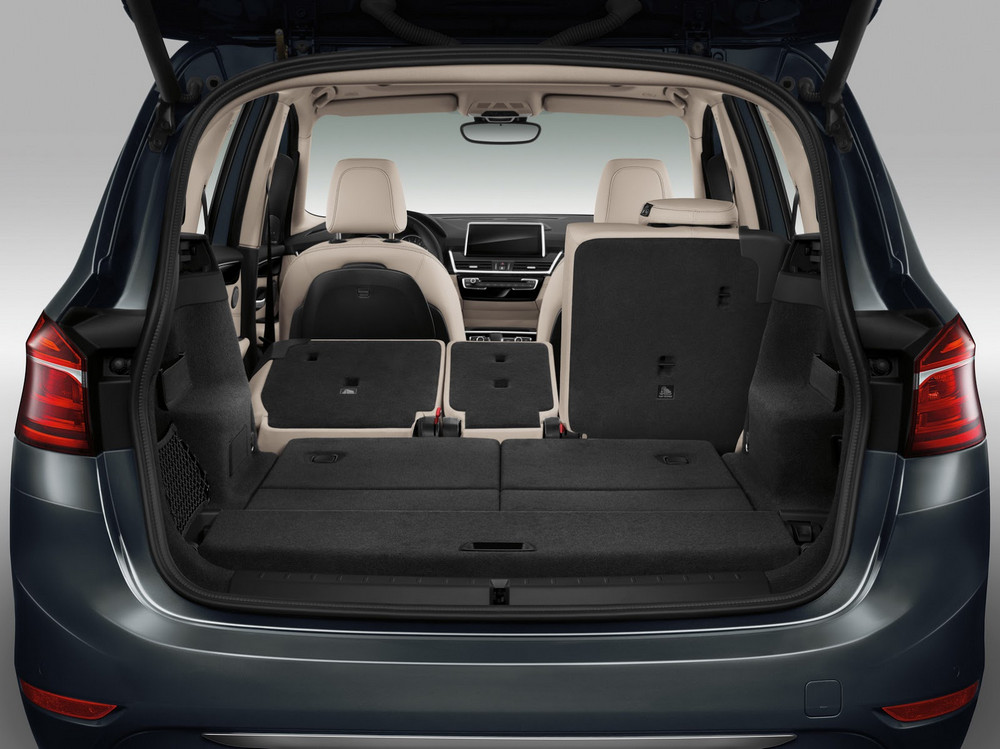 El aumento de tamaño del BMW Serie 2 Gran Tourer 2015, como decíamos, se traduce en un interior más grande. El maletero, por ejemplo, ofrece una capacidad (con cinco asientos) de 645 litros que pueden ampliarse hasta unos impresionantes 805 litros si deslizamos la segunda fila de asientos lo más adelante posible. Si abatimos los asientos, nos encontramos con una auténtica ‘gruta’ de hasta 1.905 litros de capacidad. La tercera fila de asientos queda completamente integrada en el piso del maletero cuando no está en uso.