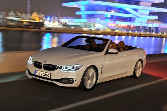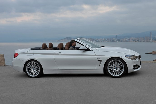 La firma alemana mostrará su BMW Serie 4 Cabrio en el Salón de Los Ángeles 2013, la variante descapotable de su atractivo coupé. El nuevo vehículo presenta la misma imagen que la versión cerrada, aunque es 10 mm más alto que éste gracias a su 1,37. Respecto al modelo al que sustituye, el Serie 3 Cabrio, es 26 milímetros más largo (4.638 mm), 43 mm más ancho (1.825 mm) y su distancia entre ejes ha aumentado 50 mm. Asimismo, los voladizos delanteros y traseros son menores, el capó es más alargado y el habitáculo ha sido desplazado hacia atrás.