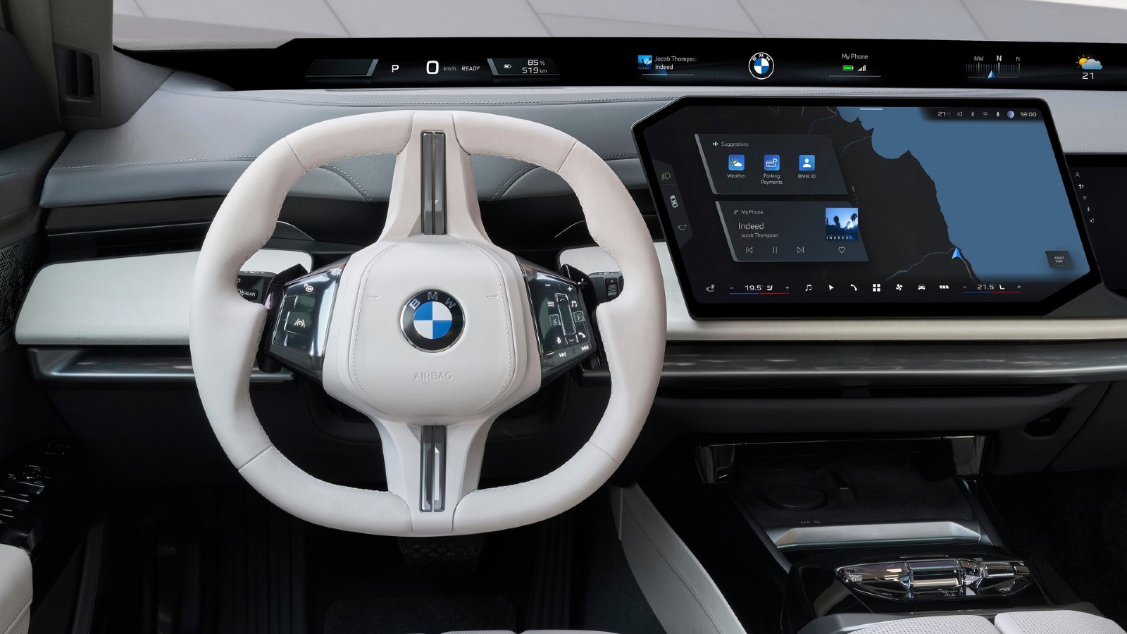 En el interior incorpora el nuevo BMW Panoramic iDrive estrenado en los BMW iX3 e i3, que proyecta la información en la base del parabrisas (Panoramic Vision) y cuenta con una pantalla central de 17,9 pulgadas. La gran novedad es la inclusión, por primera vez en un Serie 7, de una segunda pantalla en el lado del pasajero con acceso a juegos, música, videollamadas, vídeo y TV, entre otras funciones.
