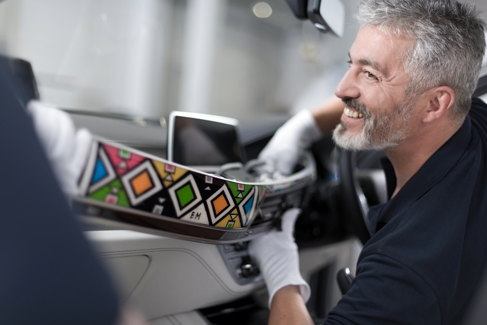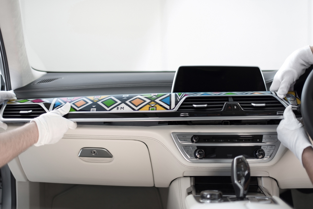 Se trata del interior de un BMW Serie 7, cuyos paneles interiores han sido terminados con colores brillantes y formas ornamentales únicas, típicos del arte Ndebele. Los especialistas de BMW Individual Manufaktur supervisaron el proceso de fabricación. Desarrollaron una moldura de madera de color blanco especialmente para Mahlangu, quien lo pintó y decoró con su estilo característico antes de sellarlo para asegurar su longevidad e instalarlo en el vehículo.
