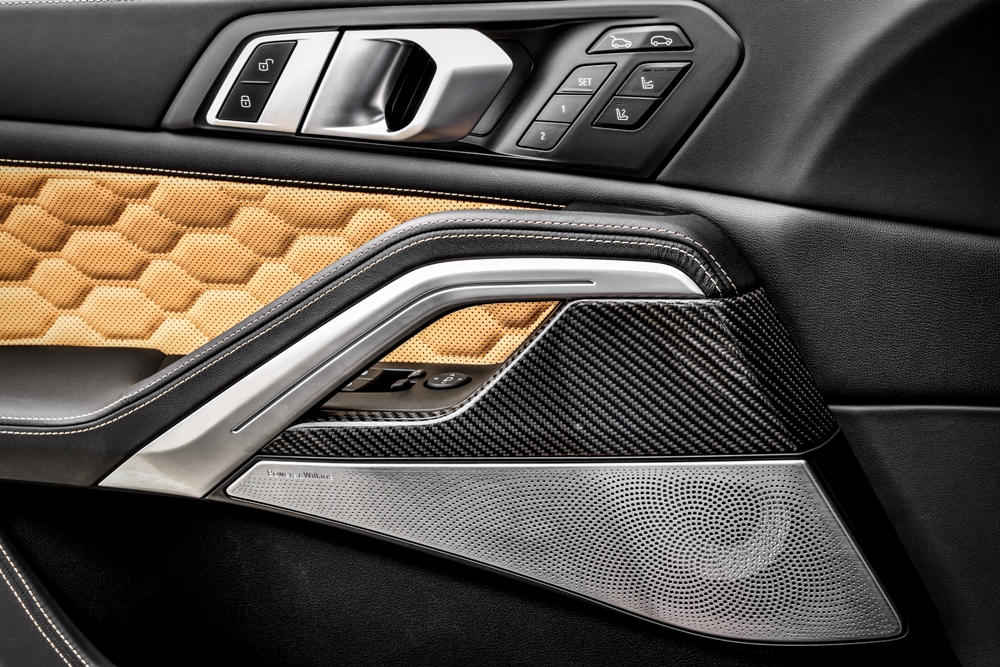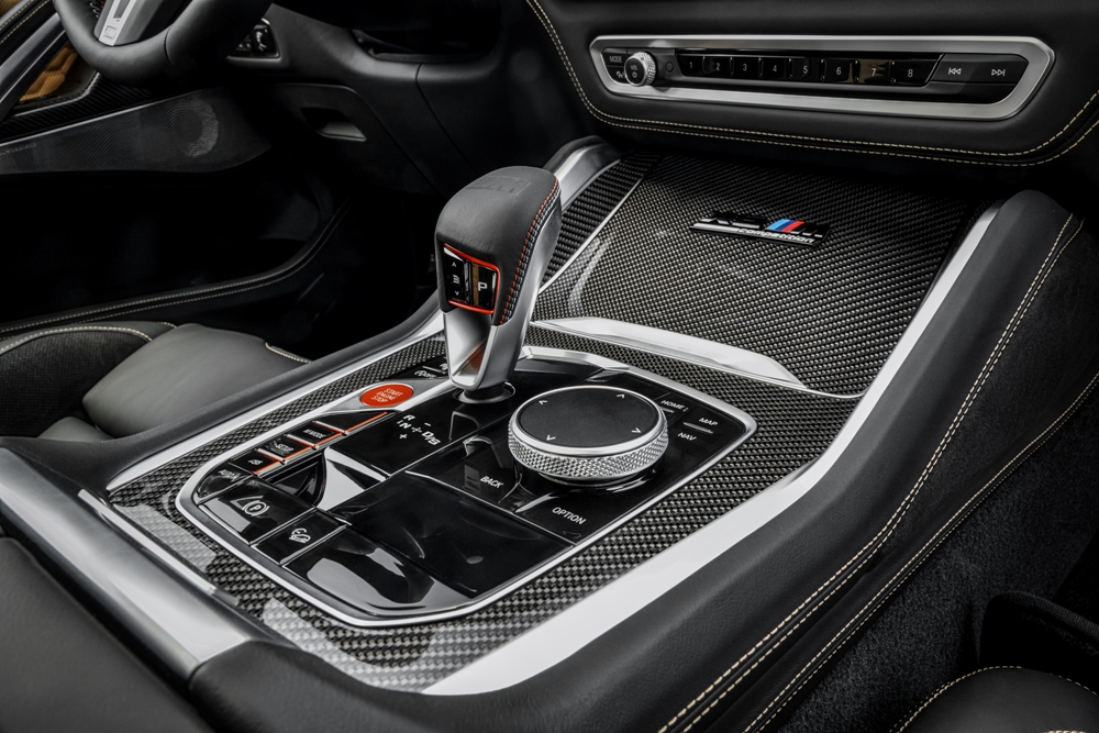 Una vez damos el salto al habitáculo del nuevo X6 M 2020 encontramos más similitudes con el X5 M. Los aspectos más destacados son un volante M forrado en cuero, placas en los umbrales de las puertas retroiluminadas, asientos deportivos multifunción con la insignia del modelo iluminada, molduras y acabados de aluminio o fibra de carbono, así como un selector de marchas con el logotipo M en relieve una serie de costuras a medida.