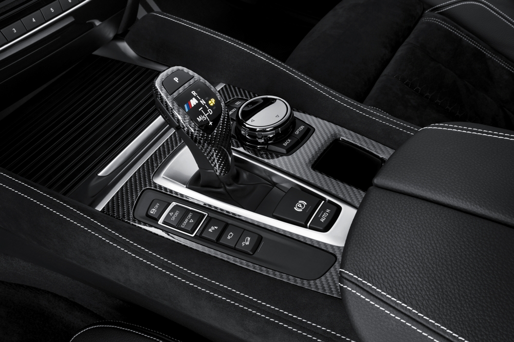 En el interior del BMW X6 M Performance encontramos piezas terminadas en fibra de carbono. Es el caso de las molduras interiores, la palanca de cambios automática y la moldura del volante, además de detalles en acero inoxidable cepillado como las molduras de entrada con LED. Finalmente, componentes como los pedales o el reposapiés lateral incorporan los logos de M Performance.