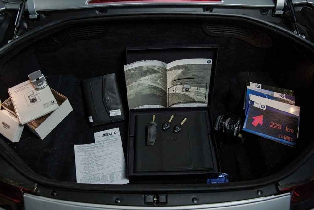 Su carrocería está fabricada en aluminio lo que lo otorga ligeraza y rigidez al conjunto. El techo duro desmontable es otro gadget indispensable del BMW Z8, quien puede ser considerado el padre de toda la familia Z de BMW. En la venta se incluyen los libros originales del modelo y se espera que doble el precio original del modelo de 128.000 dólares, es decir, unos 117.000 euros al cambio actual.
