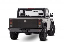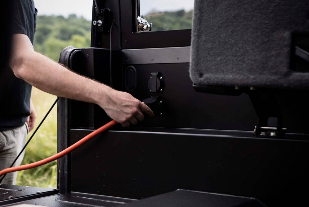 Pero a diferencia de éste, y dado los tiempos que corren, equipa dos baterías de iones de litio -pueden ser de 60 o 100 kWh-, que suministran energía a los dos motores, uno situado en cada eje, por lo que es capaz de conseguir unas cifras de infarto: rinde una potencia equivalente a 360 CV, así como 640 Nm de par máximo, perfecto para una conducción off-road. Gracias a estos números, es capaz de acelerar de 0 a 60 mph (0 a 96 km/h) en 4,5 segundos y de alcanzar la velocidad máxima de 204 km/h. Asimismo, la autonomía ofrecida varía dependiendo de la batería, pero puede ser de 193 km o de 321 km.