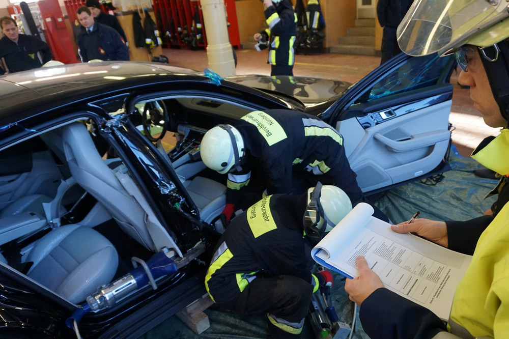 Los bomberos alemanes de Núremberg han cortado un Porsche Panamera nuevo para entrenar. Los miembros del equipo de rescate practicaron una operación de liberación de pasajeros con una unidad de la nueva generación de la berlina de Porsche, cortando sin piedad su carrocería para acceder al habitáculo, todo para conocer las novedades de seguridad que presentan los últimos modelos en llegar al mercado.