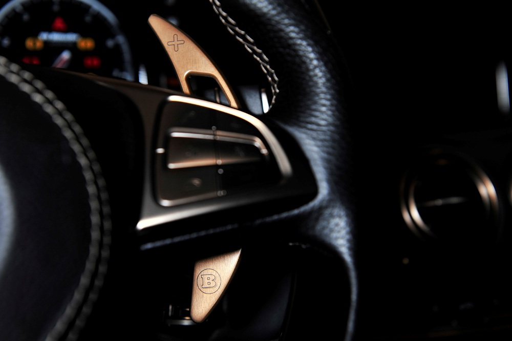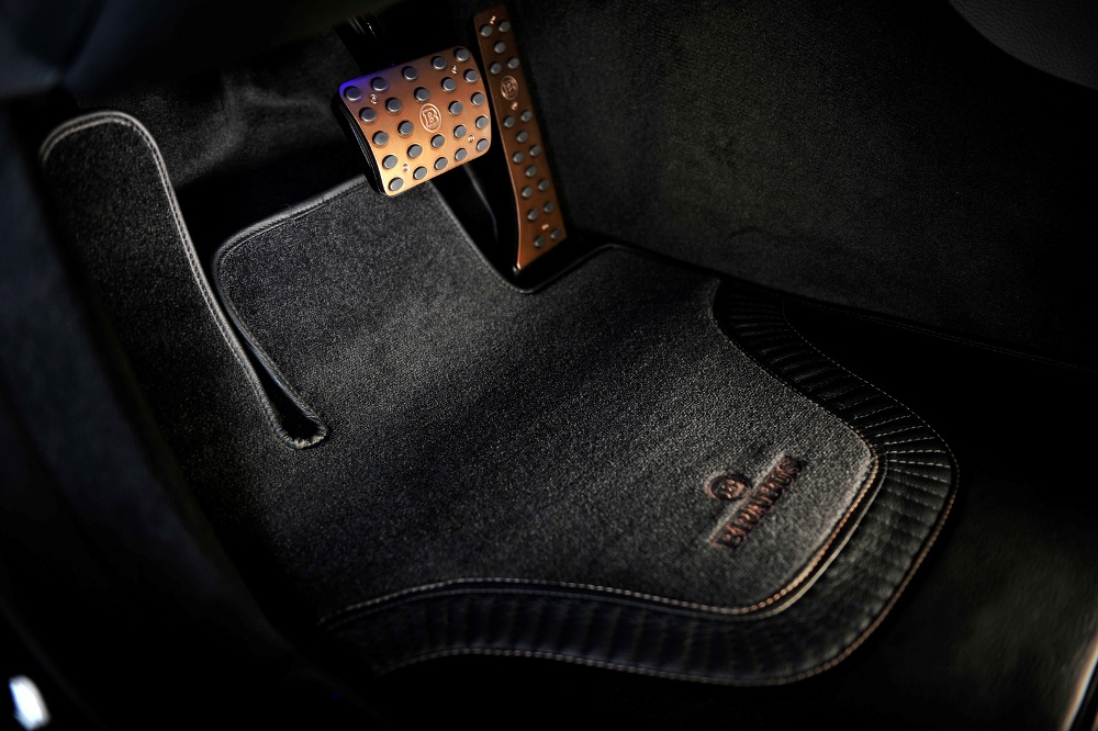 Para el tren dinámico, Brabus se ha decantado por unas llantas forjadas Monoblock de 21 pulgadas con radios cruzados y acabadas en dorado. Equipará neumáticos de alto rendimiento de la marca Continental, Pirelli o Yokohama en medidas 255/35 ZR 21, delante, y 295/30 ZR 21, detrás. Al mismo tiempo, la suspensión ha sido rebajada 15 mm con respecto a la versión de serie.