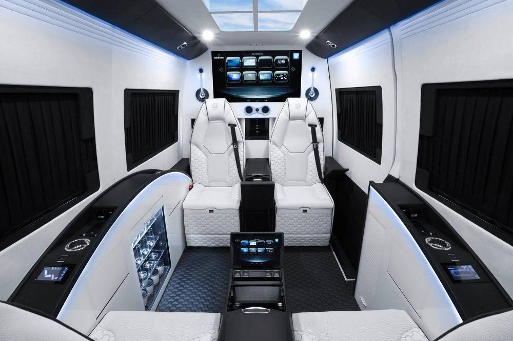 Este Mercedes-Benz Sprinter ha sido equipado con una gran cantidad de equipamiento multimedia, el cual va desde tabletas hasta grandes pantallas LCD de televisión. En la pantalla más grande se pueden ver películas, trabajar en presentaciones, jugar a videojuegos o simplemente escuchar música. Mientras tanto, la tableta permite controlar los intrincados detalles del vehículo con un simple toque.
