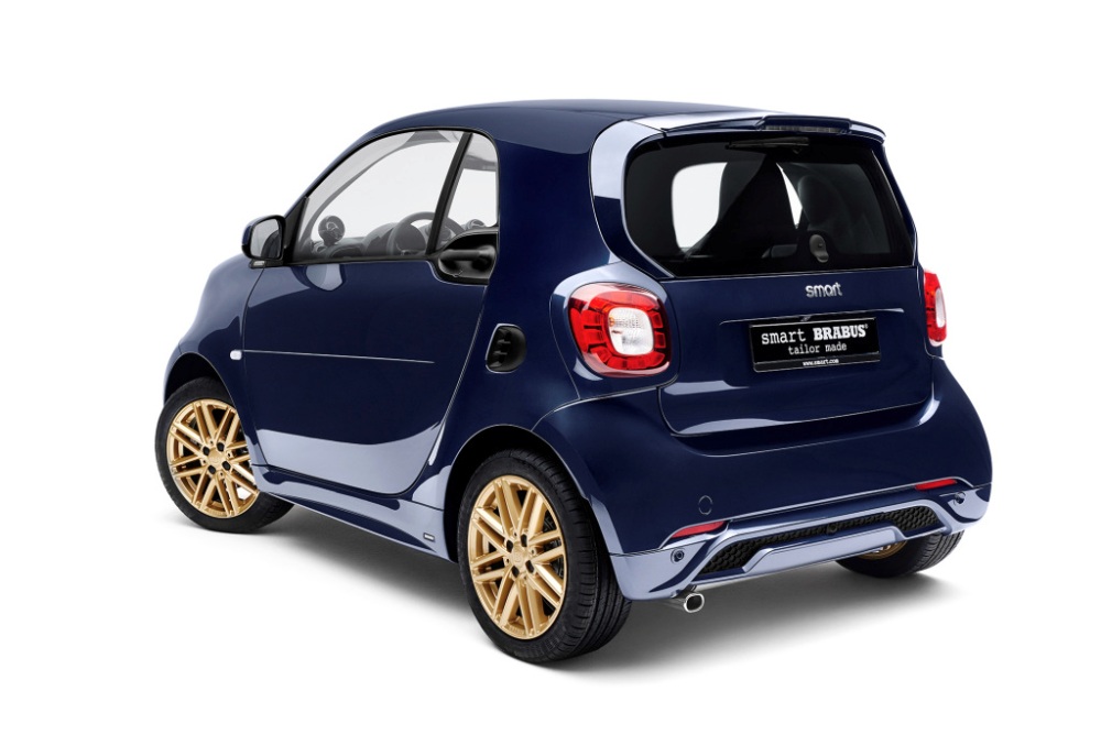 El coche hecho a medida por Brabus y smart para Veronika Heilbrunner fue revelado durante la Mercedes-Benz Fashion Week de Berlín bajo el lema “Reveal the Iconic You!”. El exterior cuenta con una pintura Velvet Blue, mientras que las llantas firmadas por Brabus están terminadas en Royal Gold. Ambos colores se suman al catálogo oficial, mientras que, para el interior, la estilista se decantó por el cuero negro, con un pomo a medida en color rojo y los reposacabezas bordados con las iniciales Veronika.