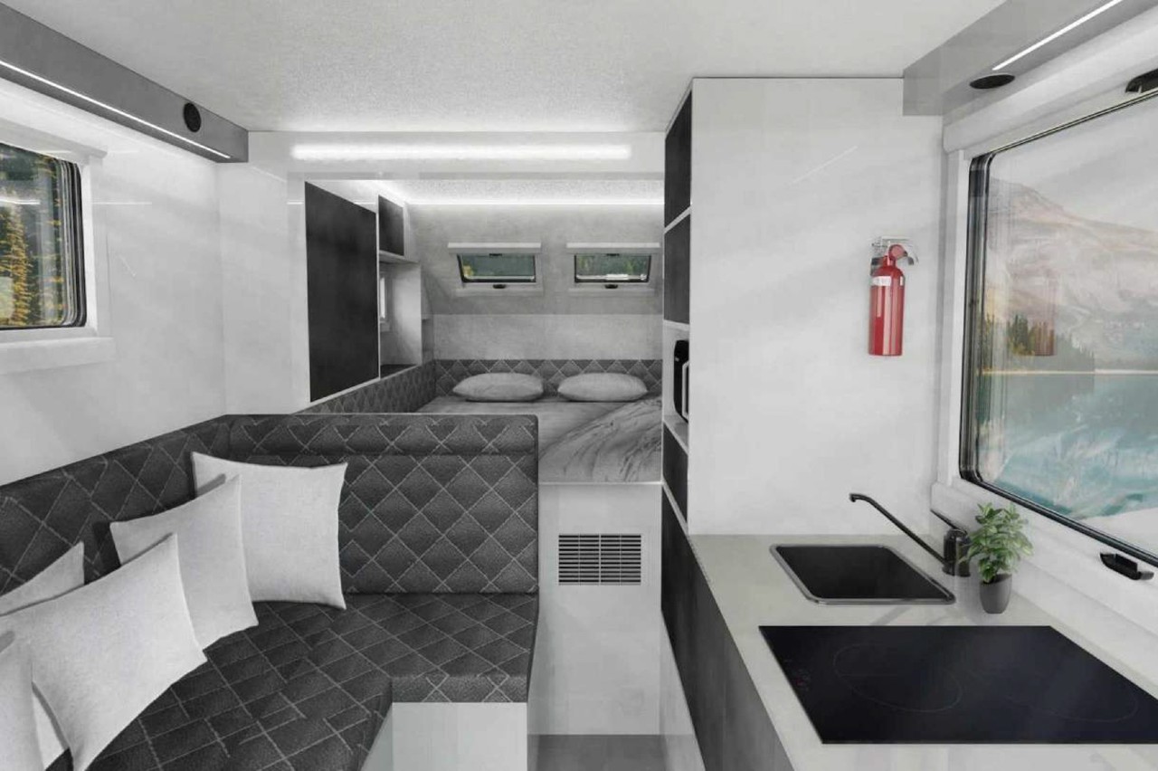 El EXP-8 consiste en un remolque camper muy espacioso y equipado con todo lo necesario para disfrutar del descanso en la naturaleza. No tiene energía eléctrica, sino que se alimenta de energía solar, mediante un sistema de 1.600 vatios y una batería de 13 Kwh. La caravana off-road será presentada oficialmente el próximo mes de octubre, aunque la compañía australiana ya ha publicado algunas imágenes y detalles.