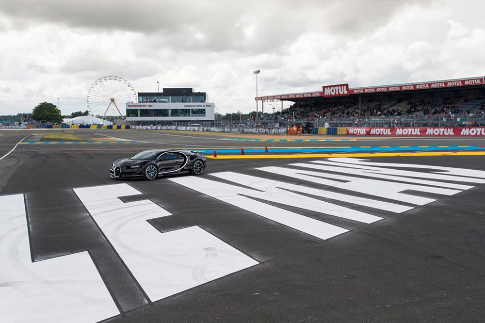 Para celebrar las victorias que logró Bugatti en Le Mans en 1937 y 1939 y también, para presentar su última creación ante el público francés, la firma llevó hasta el mítico trazado de la Sarthe a su brutal superdeportivo de 1.500 CV coincidiendo con las 24 Horas de Le Mans 2016. Con el presidente de la firma al volante, Wolfgang Dürheimer, el Bugatti Chiron llegó a 380 km/h durante el desfile previo a Le Mans ante la atenta mirada de los 250.000 espectadores que acudieron a la cita.