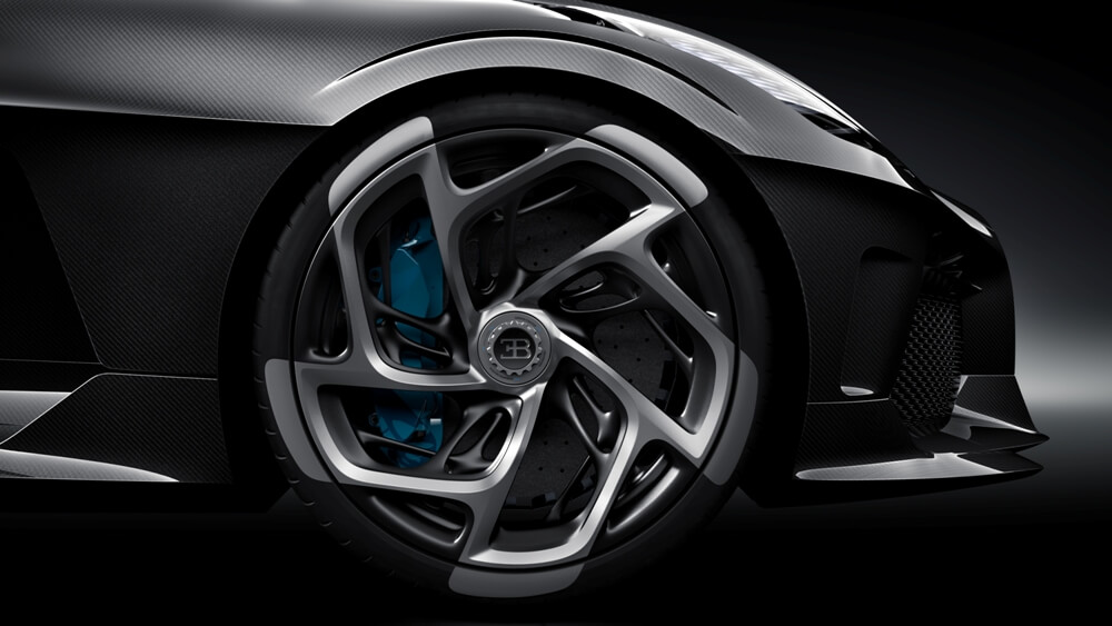 “Todos los componentes han sido hechos a mano y la carrocería de fibra de carbono tiene un brillo intenso que solo se ve interrumpido por la estructura de fibra ultrafina”, dice Etienne Salomé, diseñador de Bugatti. Las enormes llantas, cuyo diseño ‘muerde’ los neumáticos, son el colofón a un diseño único y especial para celebrar el 110º aniversario de la constitución de Bugatti como fabricante.
