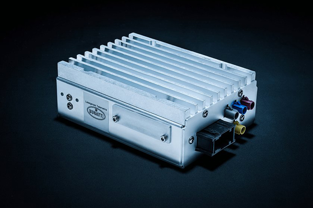 La primera vez que Bugatti usó esta tecnología fue con el Veyron en 2004, pero el sistema de telemetría del Bugatti Chiron añade muchas funcionalidades con respecto a aquel. Se trata de un dispositivo del tamaño de una pequeña caja, con exterior de aluminio y un sistema de telecomunicaciones que usa la red móvil para enviar y recibir información. De esta forma, los técnicos de la marca pueden variar a distancia los ajustes del coche, instalar una actualización o comprobar el estado de diferentes elementos.