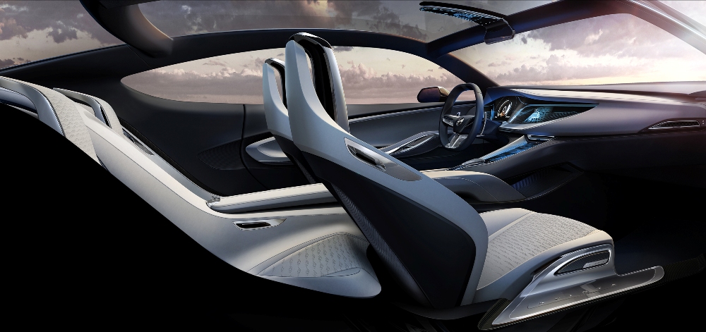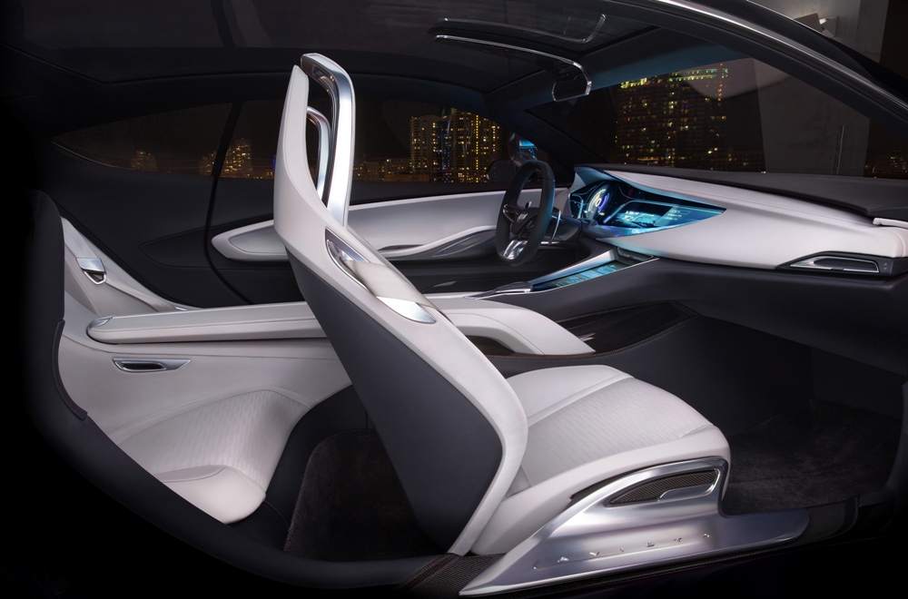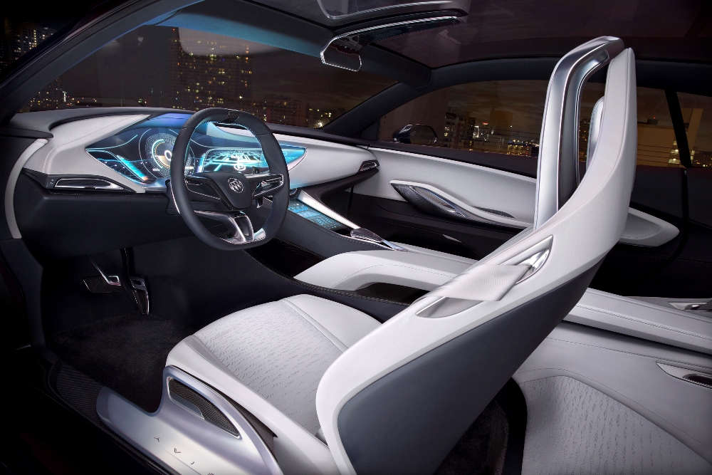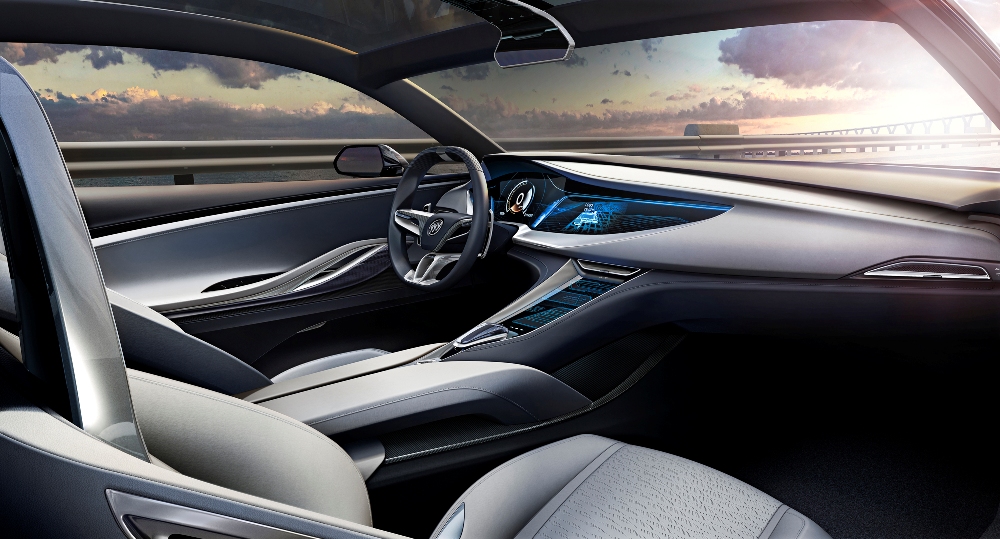 Y dando el salto al interior del Avista Concept, podremos encontrar tapicería de cuero Gris Niebla y Azul Superior, inserciones de fibra de carbono, detalles de aluminio, un cuadro de instrumentos completamente digital, el conocido sistema de infoentretenimiento IntelliLink de General Motors, una pantalla táctil y los controles para el sistema integrados en la consola central. Otros detalles destacados de este prototipo de Buick son el techo panorámico de cristal, los dos asientos traseros individuales, la tecnología de cancelación de ruidos y los purificadores de aire iónicos con una función de aromaterapia.