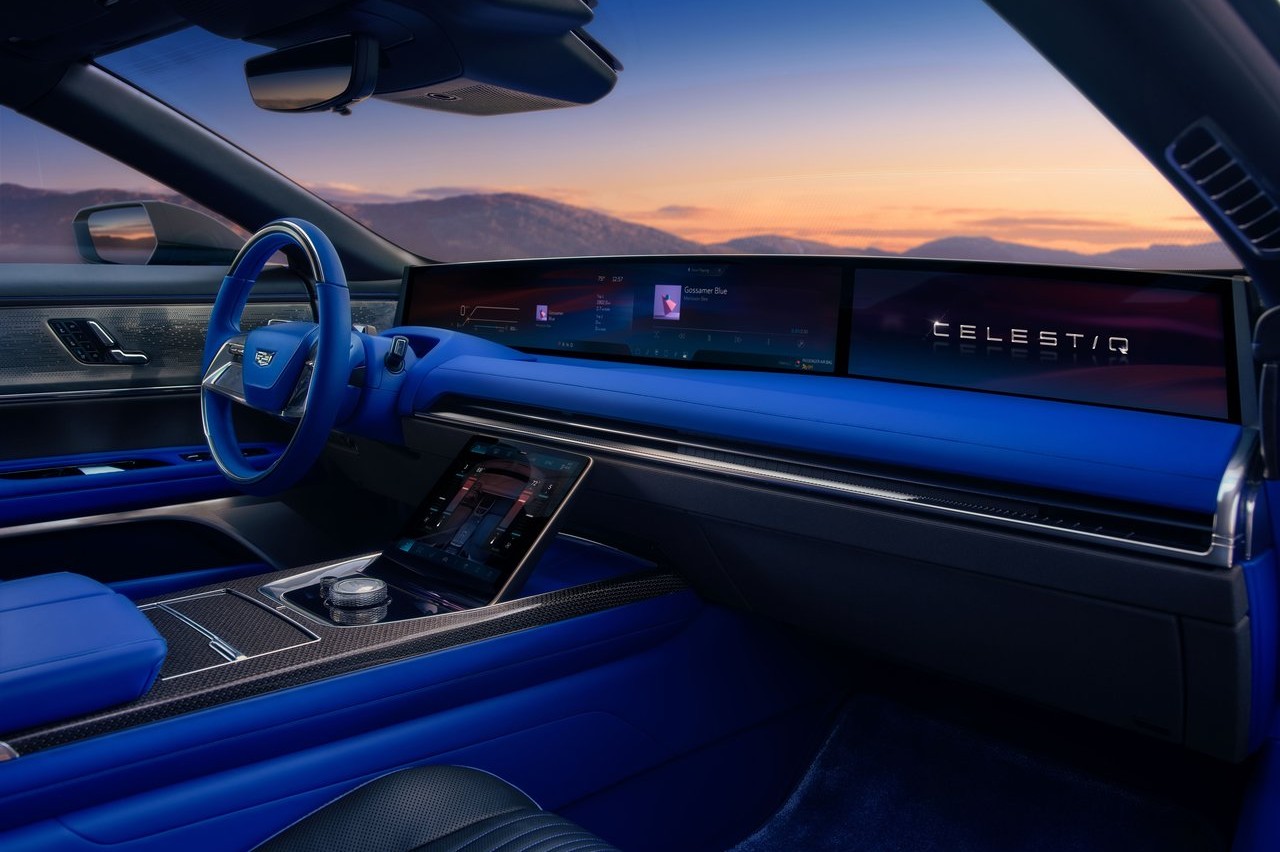 Si por fuera el Cadillac Celestiq sorprende por su diseño vanguardista, el interior no deja tampoco indiferente a nadie. Encontramos un salpicadero muy horizontal y ancho, completamente digitalizado mediante una pantalla de 55 pulgadas y otra táctil de 11 pulgadas ubicada en el túnel de transmisión. En las plazas traseras hay otras tres pantallas, una de 12,6 pulgadas en los respaldos de los asientos delanteros y otra de ocho pulgadas en el túnel de transmisión.