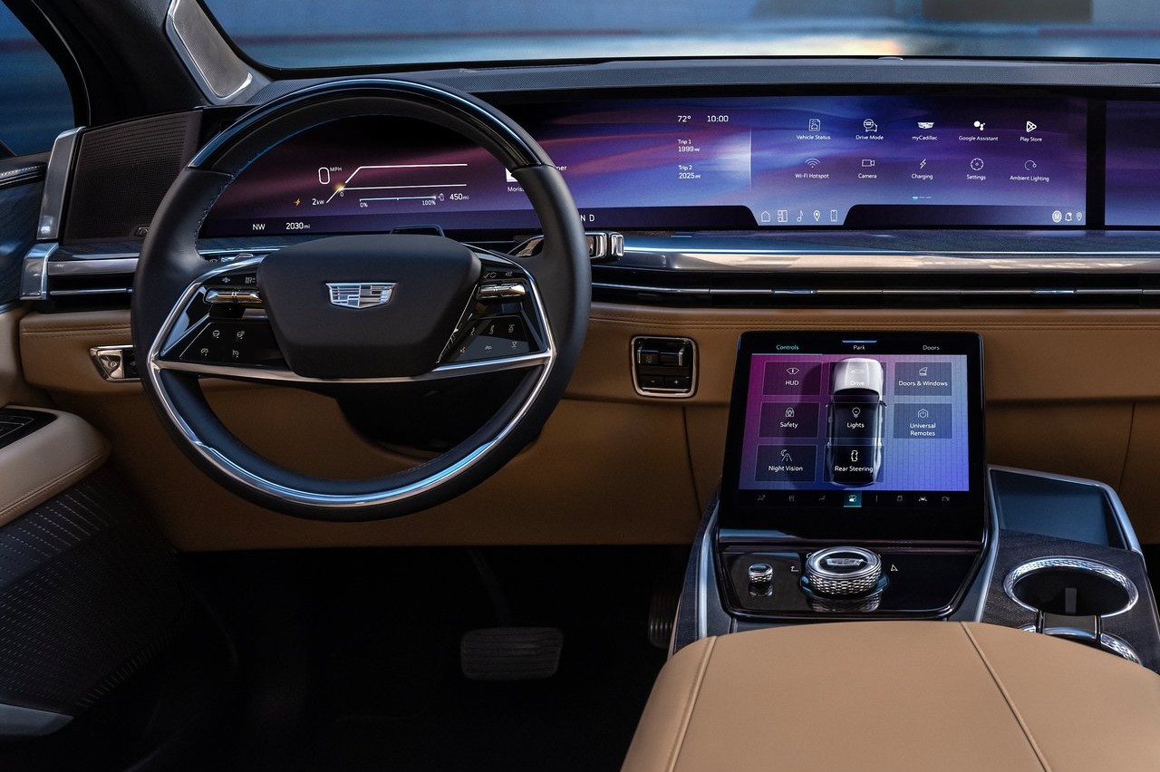 Cadillac ha desarrollado un vehículo totalmente desde cero. Mide 5,69 metros de largo, 2,16 metros de ancho y 1,93 metros de alto, con una distancia entre ejes de 3,46 metros. Como ves, es gigantesco. Estéticamente, aunque presenta muchos cambios con respecto a las anteriores versiones de combustión, es perfectamente reconocible por los grupos ópticos frontales verticales. Este formato vertical se repite en las ópticas traseras, divididas en dos secciones, un recurso que ya hemos visto en el nuevo Volvo EX30.