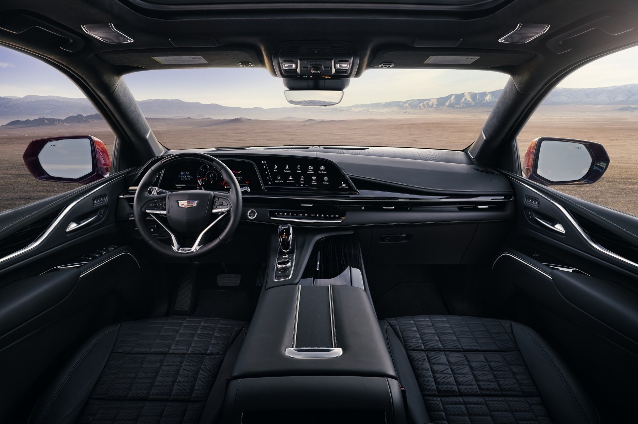 El interior da buena cuenta del lujo esperable del modelo, con tapicería de cuero, molduras de distintos materiales (metálicos o de madera), asientos delanteros con funciones de masaje, sistema de sonido 3D con 36 altavoces y la enorme pantalla de 38 pulgadas que aúna el cuadro de instrumentos (que tiene14,2”) con la consola central. De manera opcional se podrá incluir el sistema Super Cruise de conducción semiautónoma.