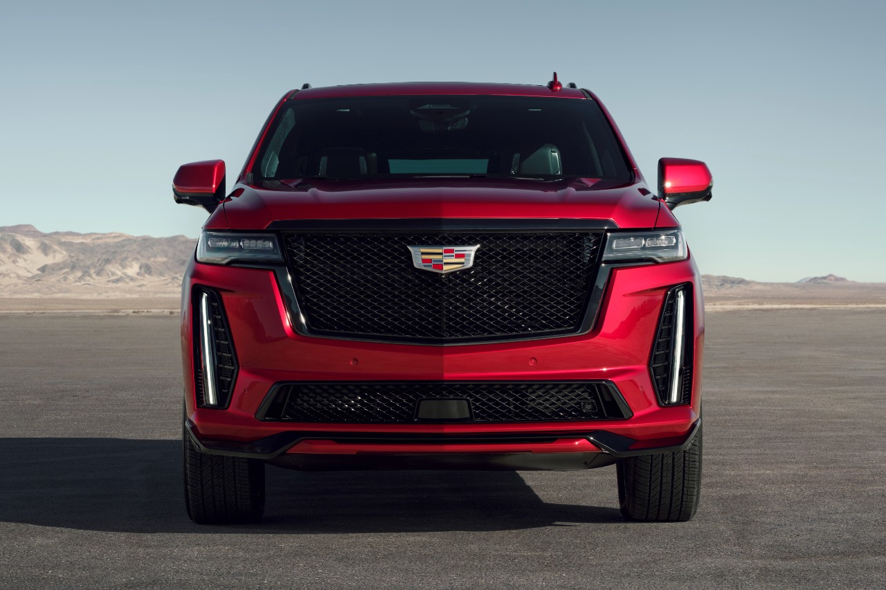 A grandes rasgos el diseño es el característico del Cadillac, pero cuenta con detalles específicos que dejan claro que es más deportivo que el resto de la gama. La gigantesca parrilla está rematada en negro, tono que repite en los bajos, los marcos de las ventanillas y los raíles del techo. Además, calza llantas de 22 pulgadas con diseño multirradio.