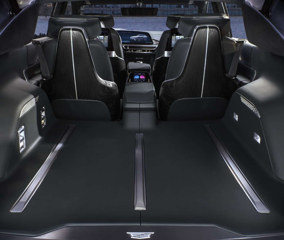 En el interior destaca la gran pantalla LED de una sola pieza con un tamaño de 33 pulgadas que se extiende sobre la mayor parte del salpicadero, ofreciendo información relevante para el conductor, controles para el sistema de infoentretenimiento y visión a través de cámaras. Cadillac asegura que su nueva pantalla tiene la densidad de píxeles más alta en la industria del automóvil actual, con más de mil millones de colores, 64 veces más que cualquier vehículo.